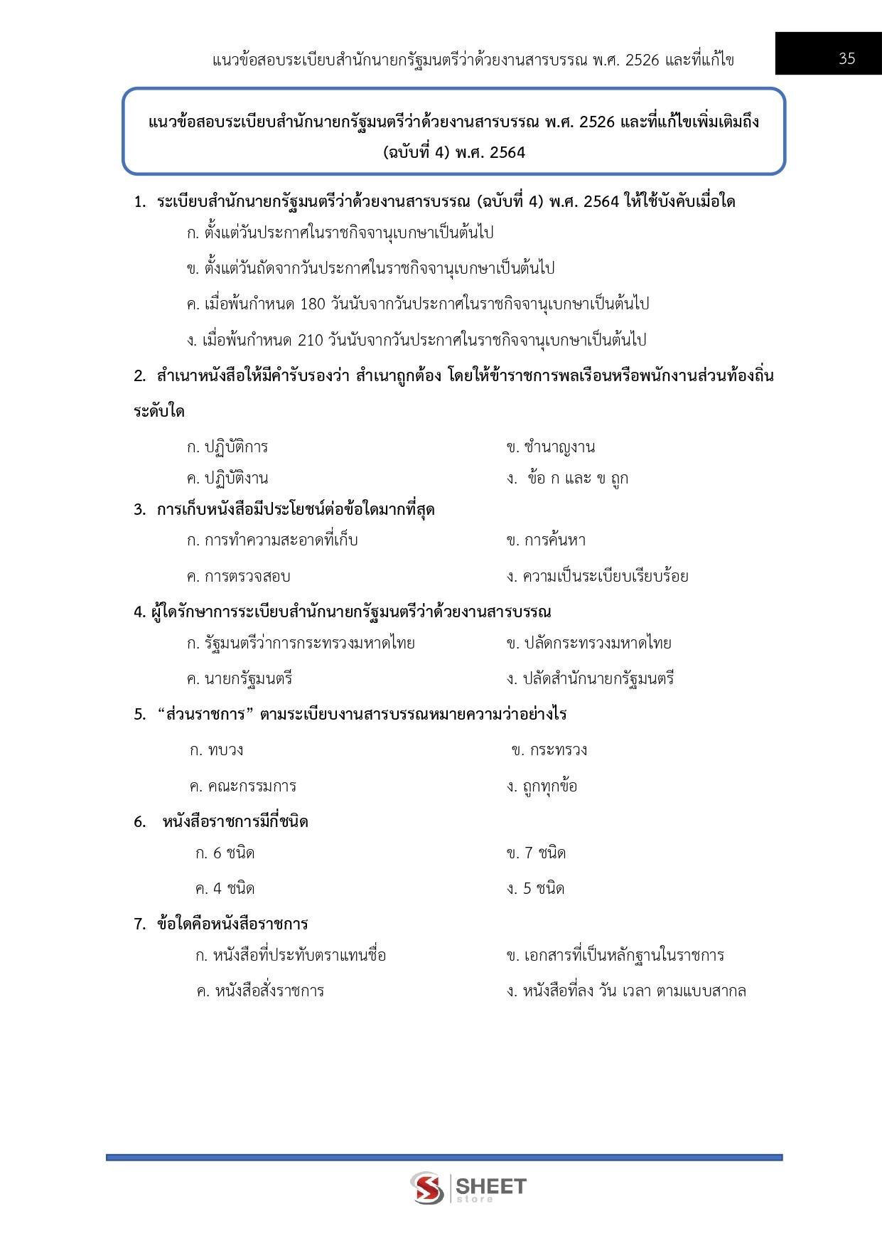 – แนวข้อสอบระเบียบสำนักนายกรัฐมนตรีว่าด้วยงานสารบรรณ พ.ศ. 2526 และที่แก้ไขเพิ่มเติมถึง (ฉบับที่ 4) พ.ศ.2564