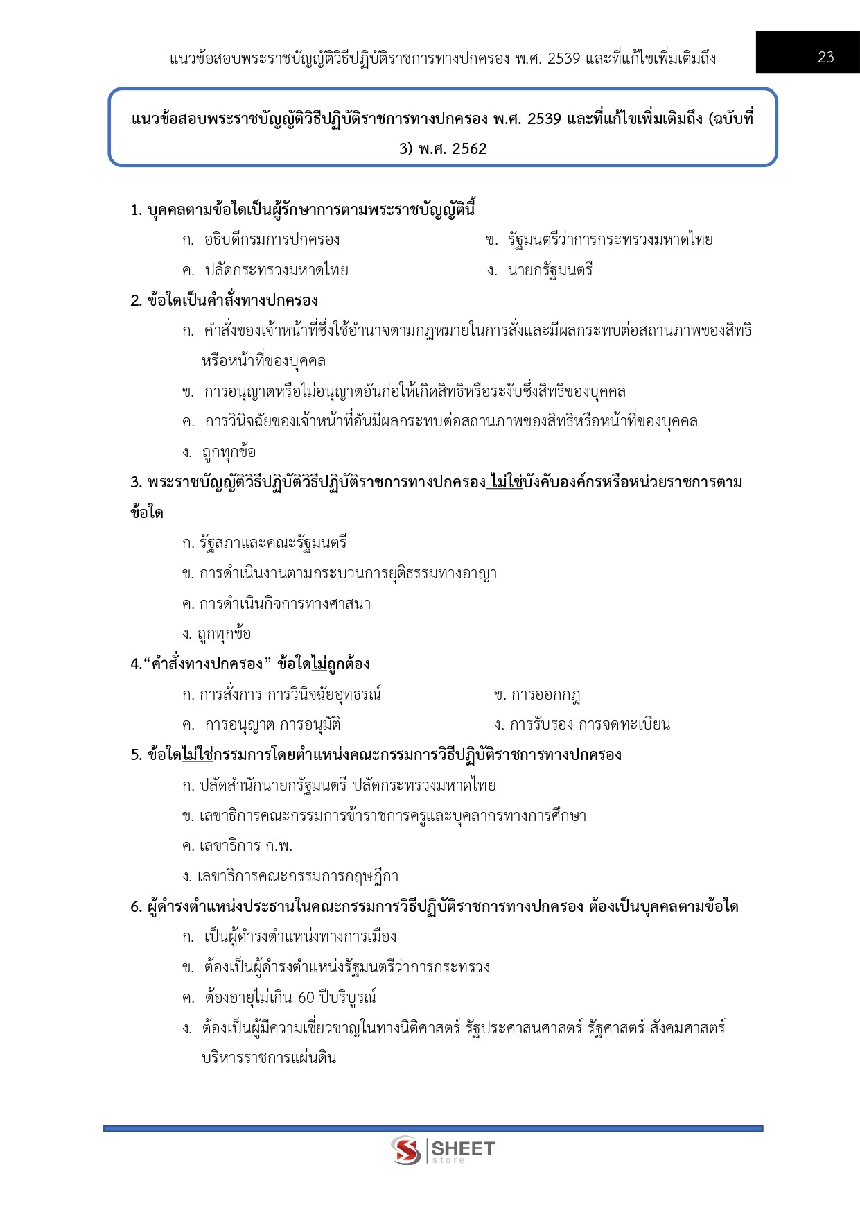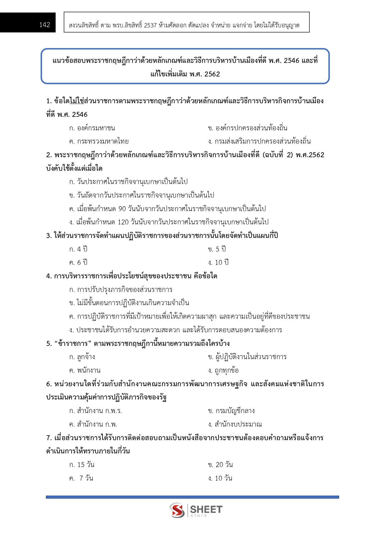– แนวข้อสอบสรุปสาระสำคัญพระราชกฤษฎีกาว่าด้วยหลักเกณฑ์และวิธีการบริหารกิจการบ้านเมืองที่ดี พ.ศ.2546 และที่แก้ไขเพิ่มเติมถึง (ฉบับที่ 2) พ.ศ.2562