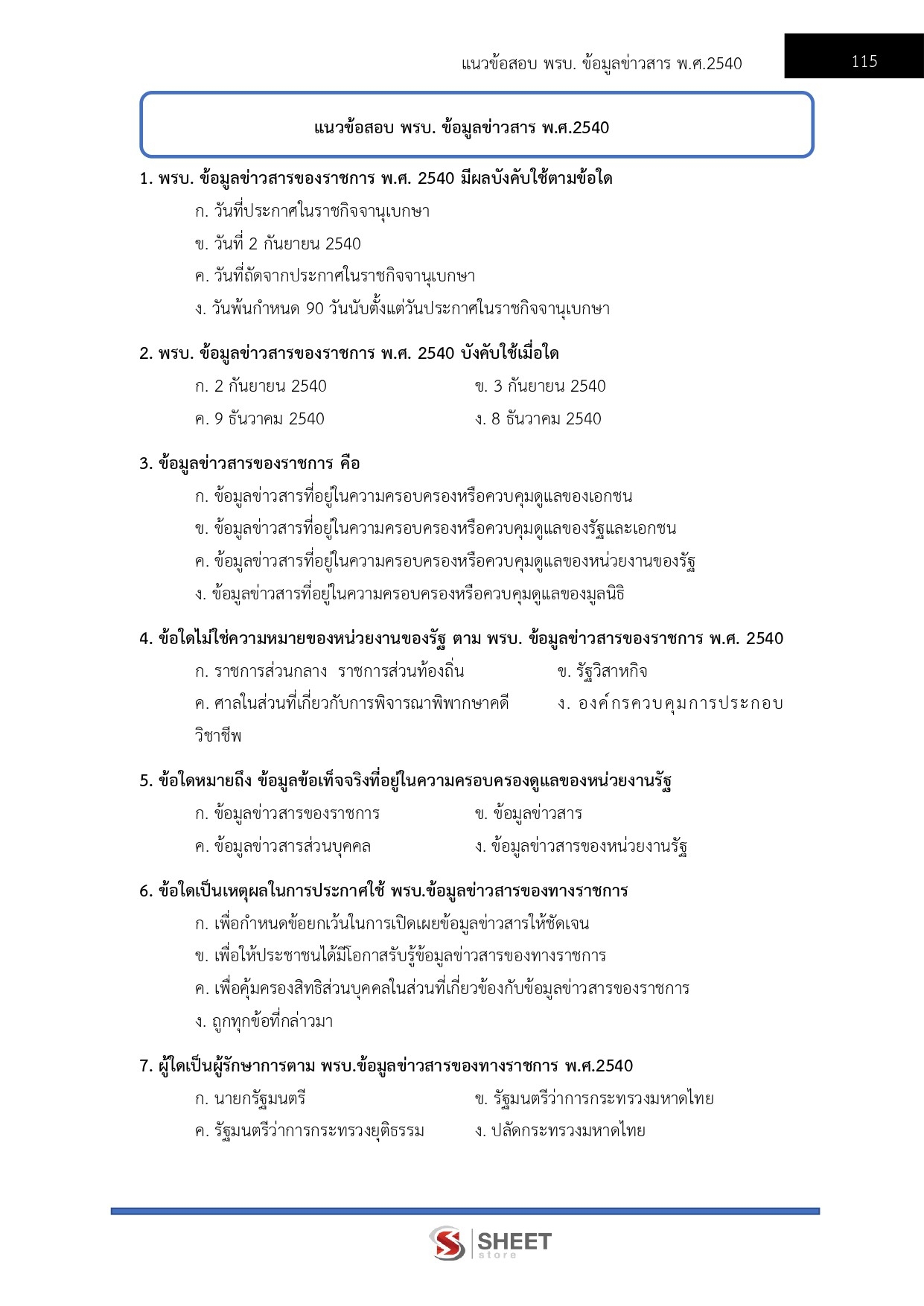 – แนวข้อสอบพระราชบัญญัติข้อมูลข่าวสารของราชการ พ.ศ. 2540