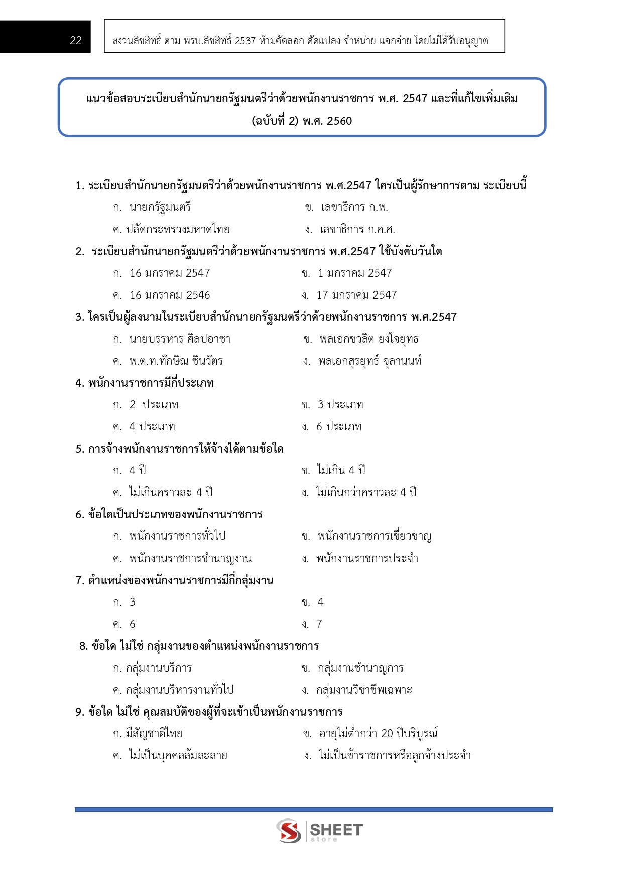 – แนวข้อสอบระเบียบสำนักนายกรัฐมนตรีว่าด้วยพนักงานราชการ พ.ศ. 2547 และแก้ไขเพิ่มเติม (ฉบับที่ 2) พ.ศ.2560