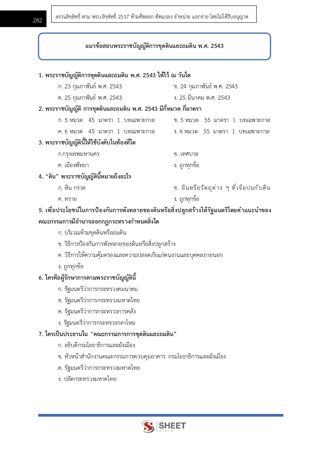 – แนวข้อสอบพระราชบัญญัติการขุดดินและถมดิน พ.ศ. 2543