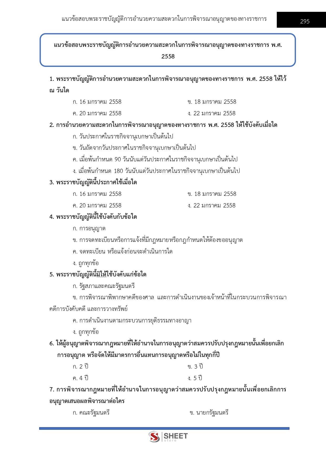 – แนวข้อสอบสรุปสาระสำคัญพระราชบัญญัติการอำนวยความสะดวกในการพิจารณาอนุญาตของทางราชการ พ.ศ. 2558