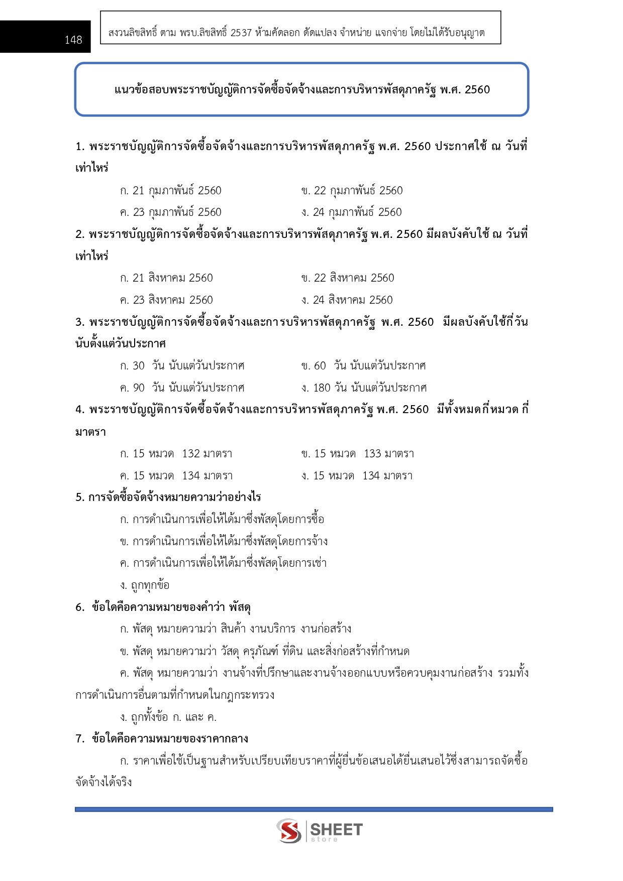 – แนวข้อสอบสรุปสาระสำคัญพระราชบัญญัติการจัดซื้อจัดจ้างและการบริหารพัสดุภาครัฐ พ.ศ. 2560