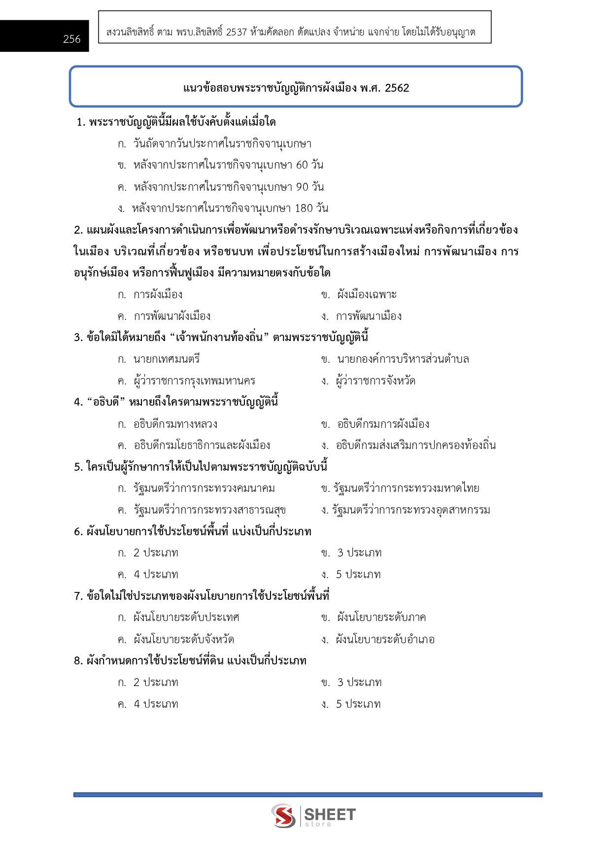 – แนวข้อสอบพระราชบัญญัติการผังเมือง พ.ศ. 2562