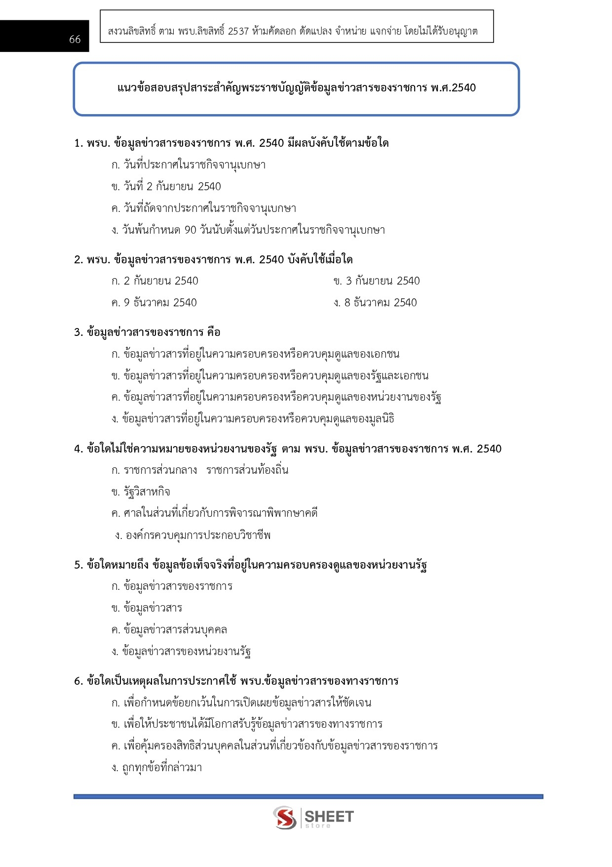 – แนวข้อสอบพระราชบัญญัติข้อมูลข่าวสารของราชการ พ.ศ. 2540