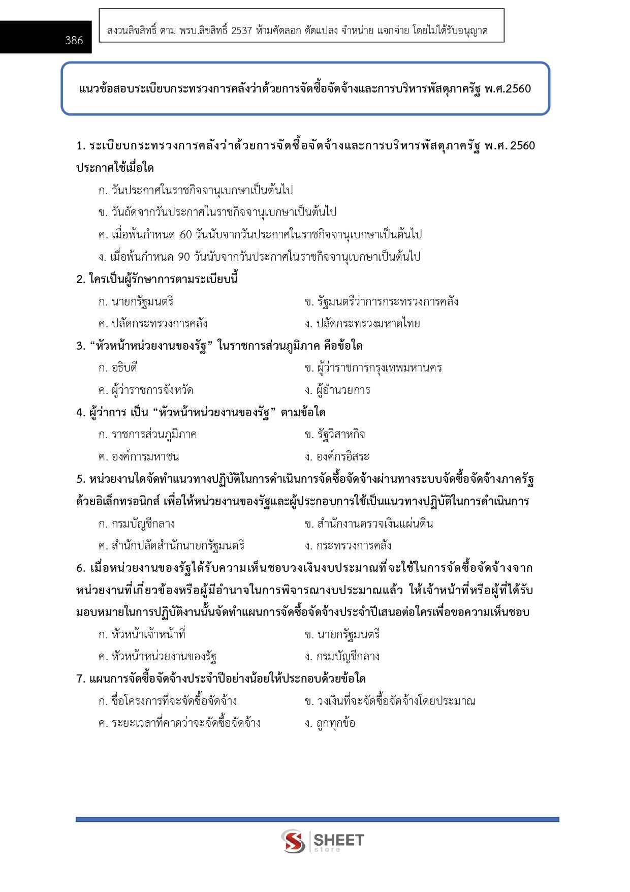 – แนวข้อสอบระเบียบกระทรวงการคลังว่าด้วยการจัดซื้อจัดจ้างและการบริหารพัสดุภาครัฐ พ.ศ. 2560