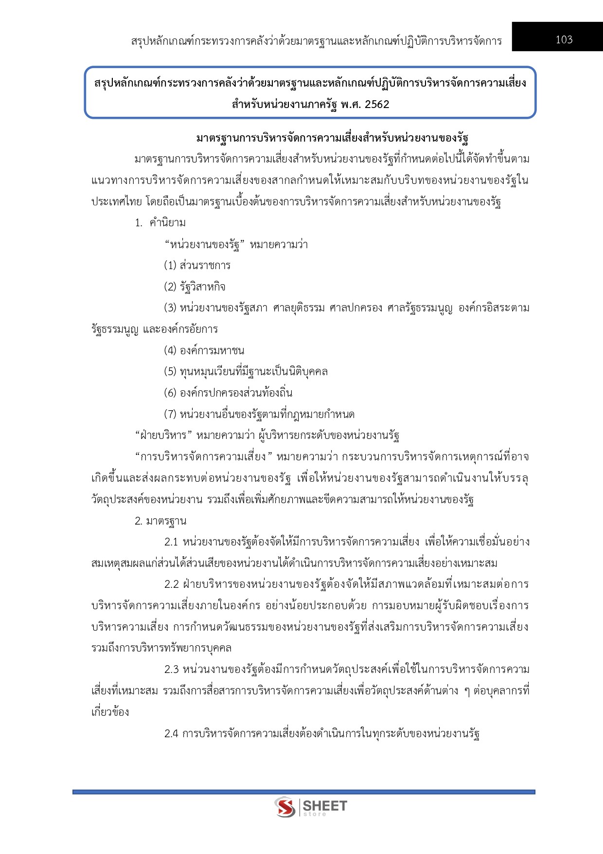 – สรุปหลักเกณฑ์กระทรวงการคลังว่าด้วยมาตรฐานและหลักเกณฑ์ปฏิบัติการบริหารจัดการความเสี่ยง สำหรับหน่วยงานภาครัฐ พ.ศ. 2562