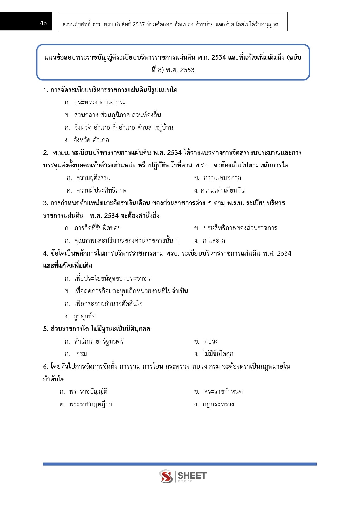 – แนวข้อสอบพระราชกฤษฎีกาว่าด้วยหลักเกณฑ์ และวิธีการบริหารบ้านเมืองที่ดี พ.ศ. 2546 และที่แก้ไขเพิ่มเติมถึง (ฉบับที่ 2) พ.ศ.2562