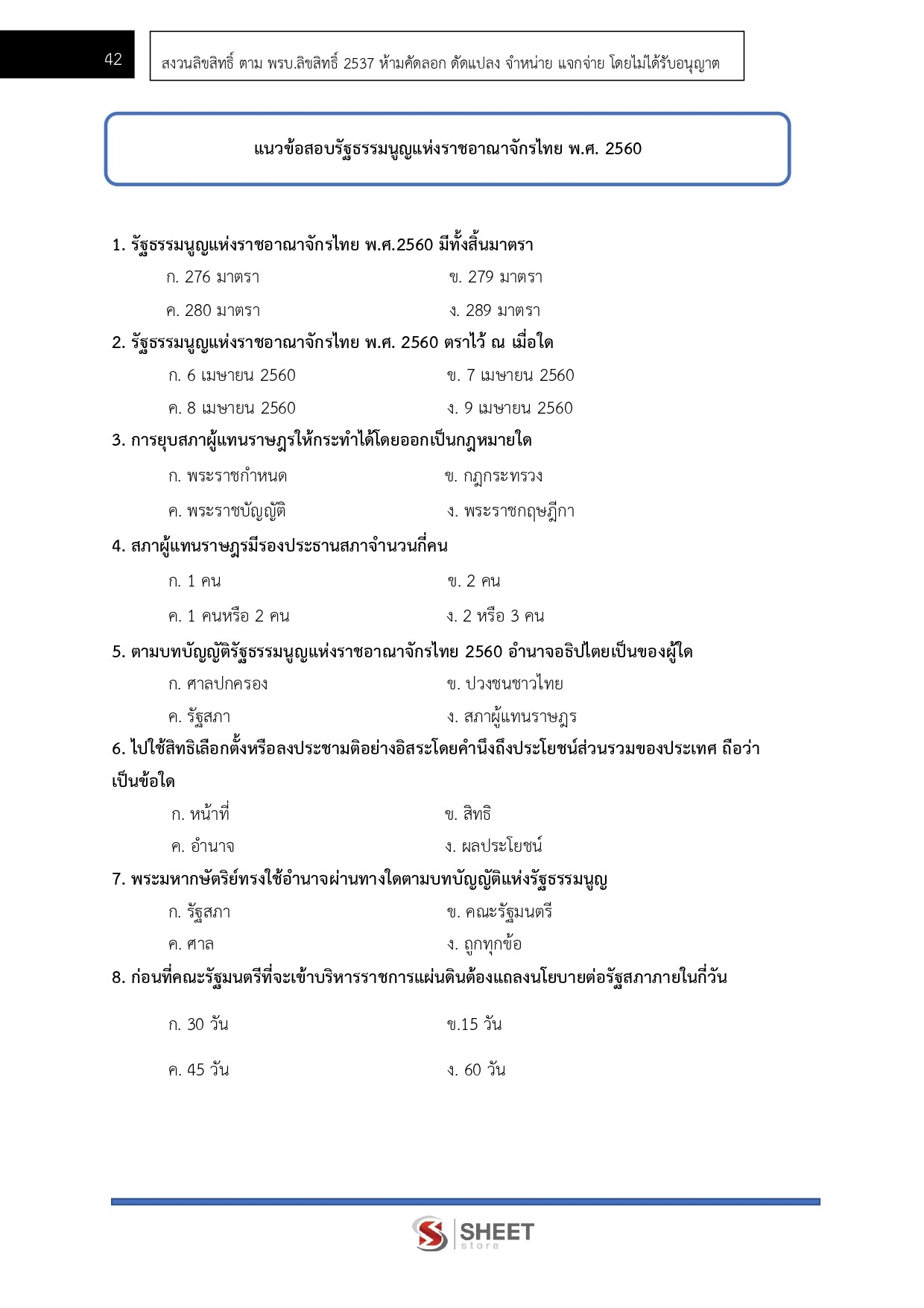 – แนวข้อสอบรัฐธรรมนูญแห่งราชอาณาจักรไทย พ.ศ. 2560
