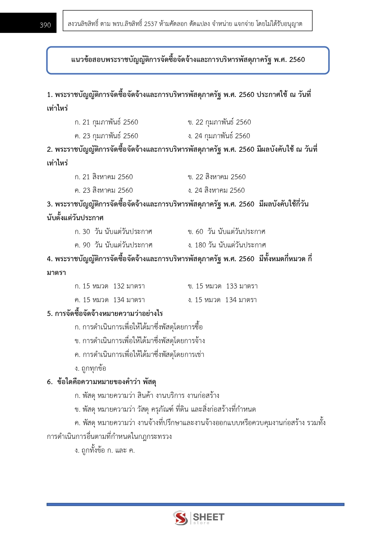 – แนวข้อสอบพระราชบัญญัติการจัดซื้อจัดจ้างและการบริหารพัสดุภาครัฐ พ.ศ.2560