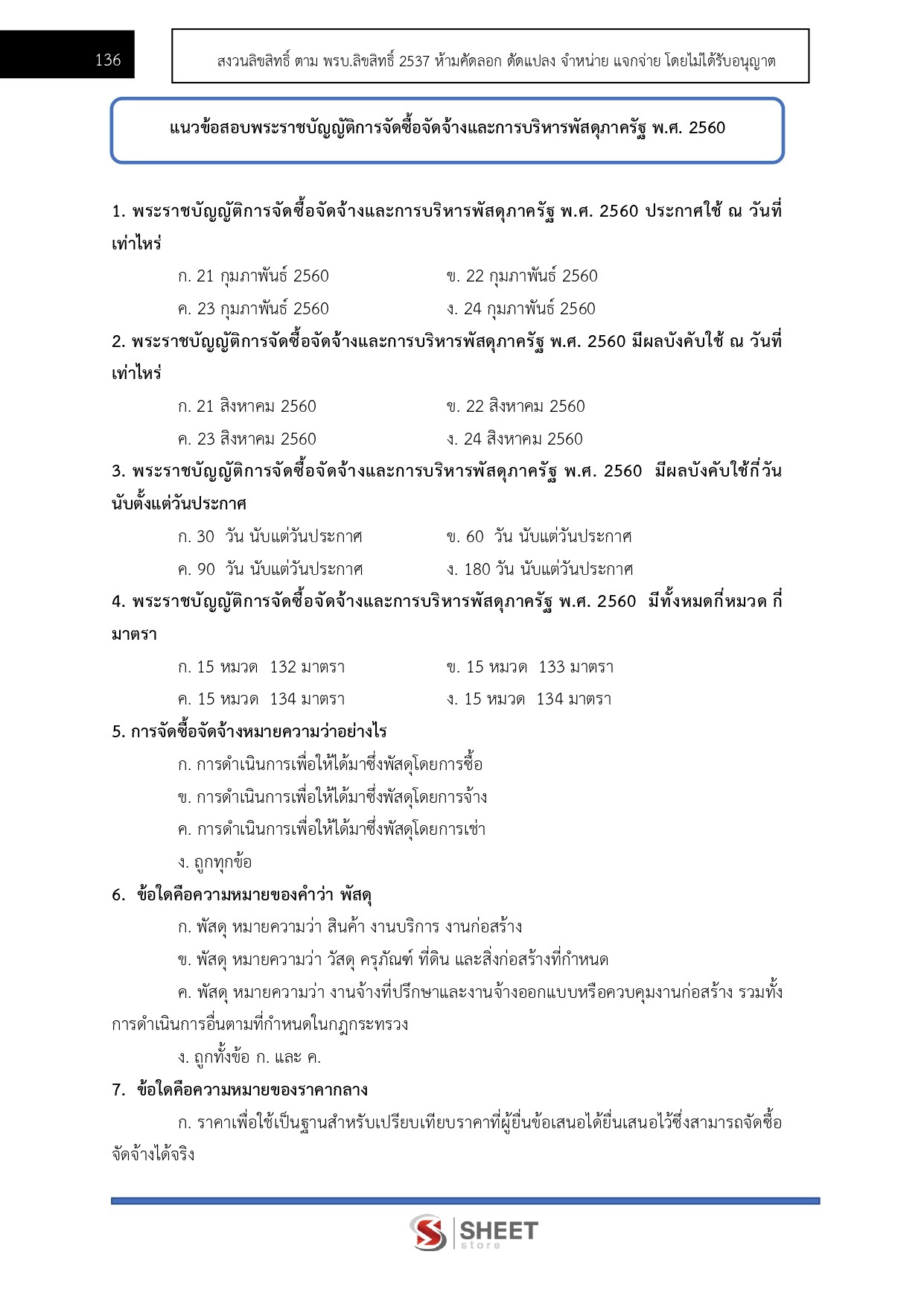 – แนวข้อสอบกฎกระทรวงตามพระราชบัญญัติการจัดซื้อจัดจ้างและการบริหารพัสดุภาครัฐพ.ศ. 2560