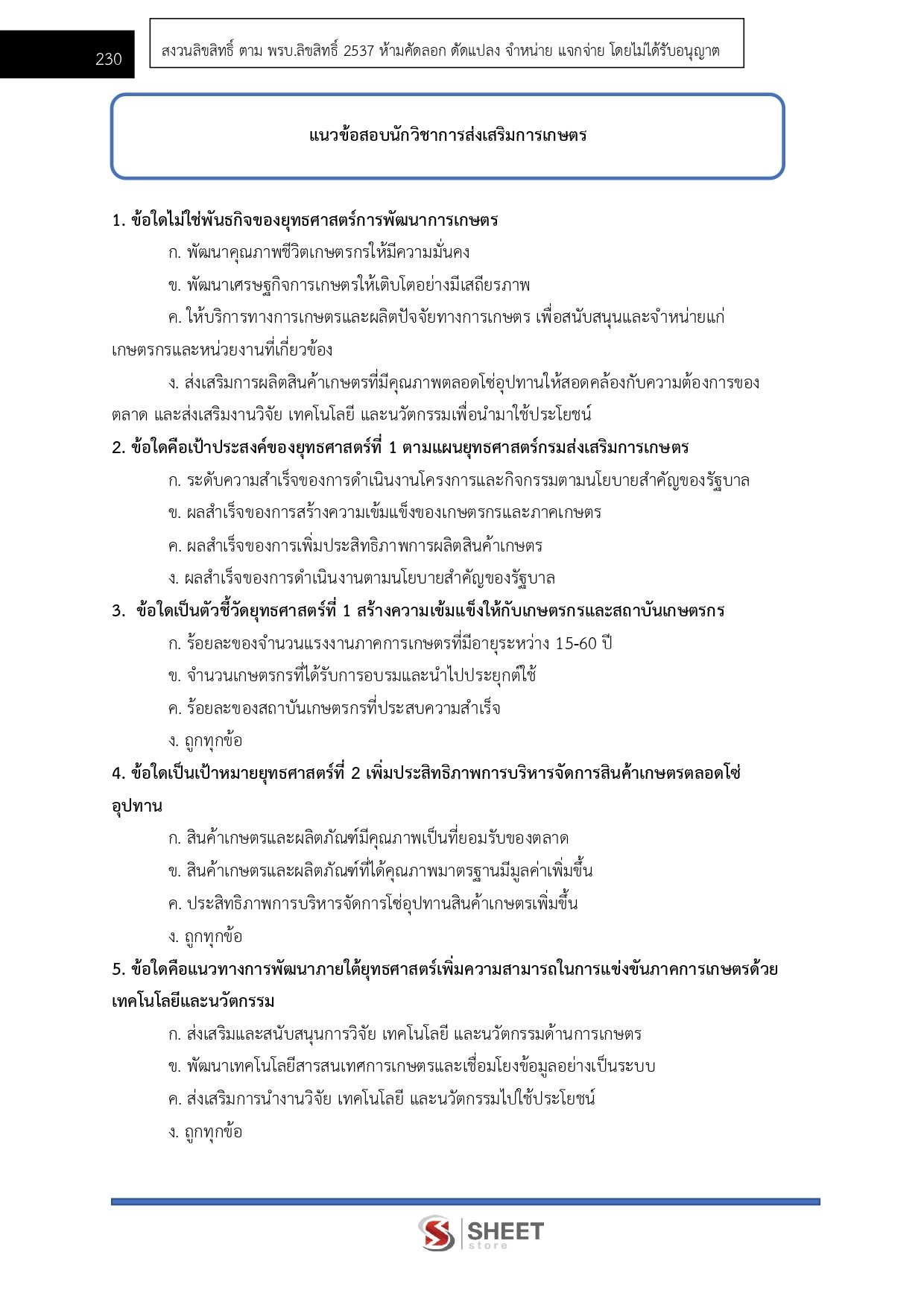 แนวข้อสอบ นักวิชาการส่งเสริมการเกษตรปฏิบัติการ กรมส่งเสริมการเกษตร