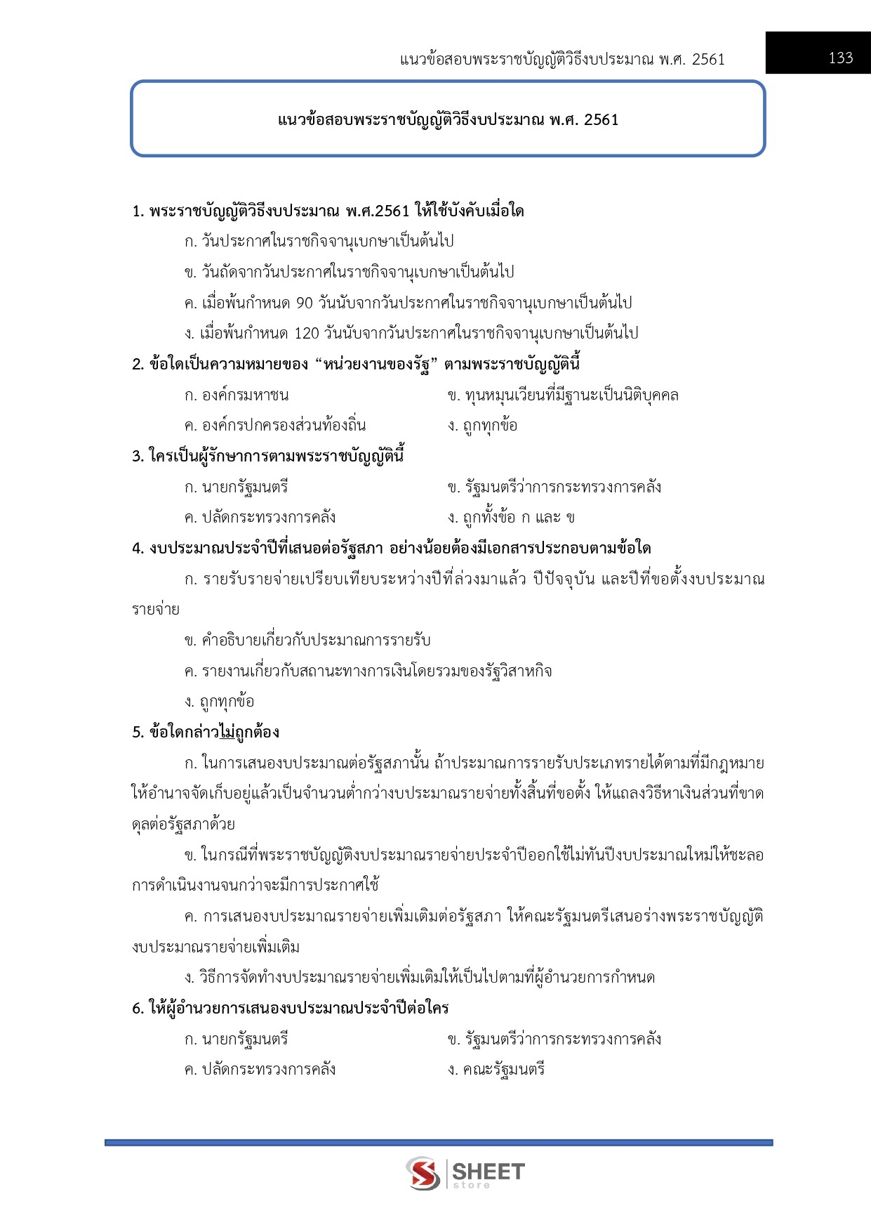 – แนวข้อสอบพระราชบัญญัติวิธีการงบประมาณ พ.ศ. 2561