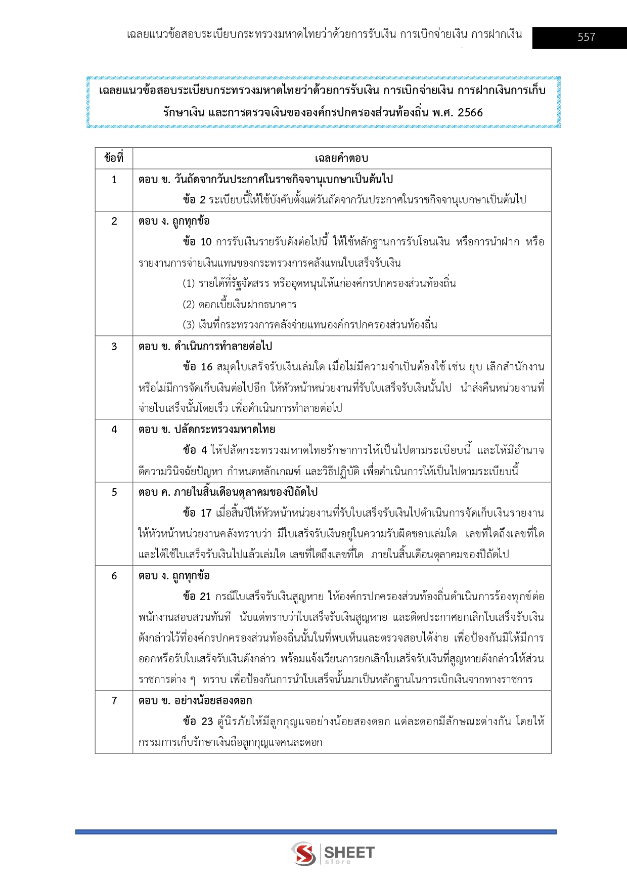 – แนวข้อสอบระเบียบกระทรวงมหาดไทยว่าด้วยการรับเงิน การเบิกจ่ายเงิน การฝากเงิน การเก็บรักษาเงิน และการตรวจเงินขององค์กรปกครองส่วนท้องถิ่น พ.ศ. 2566