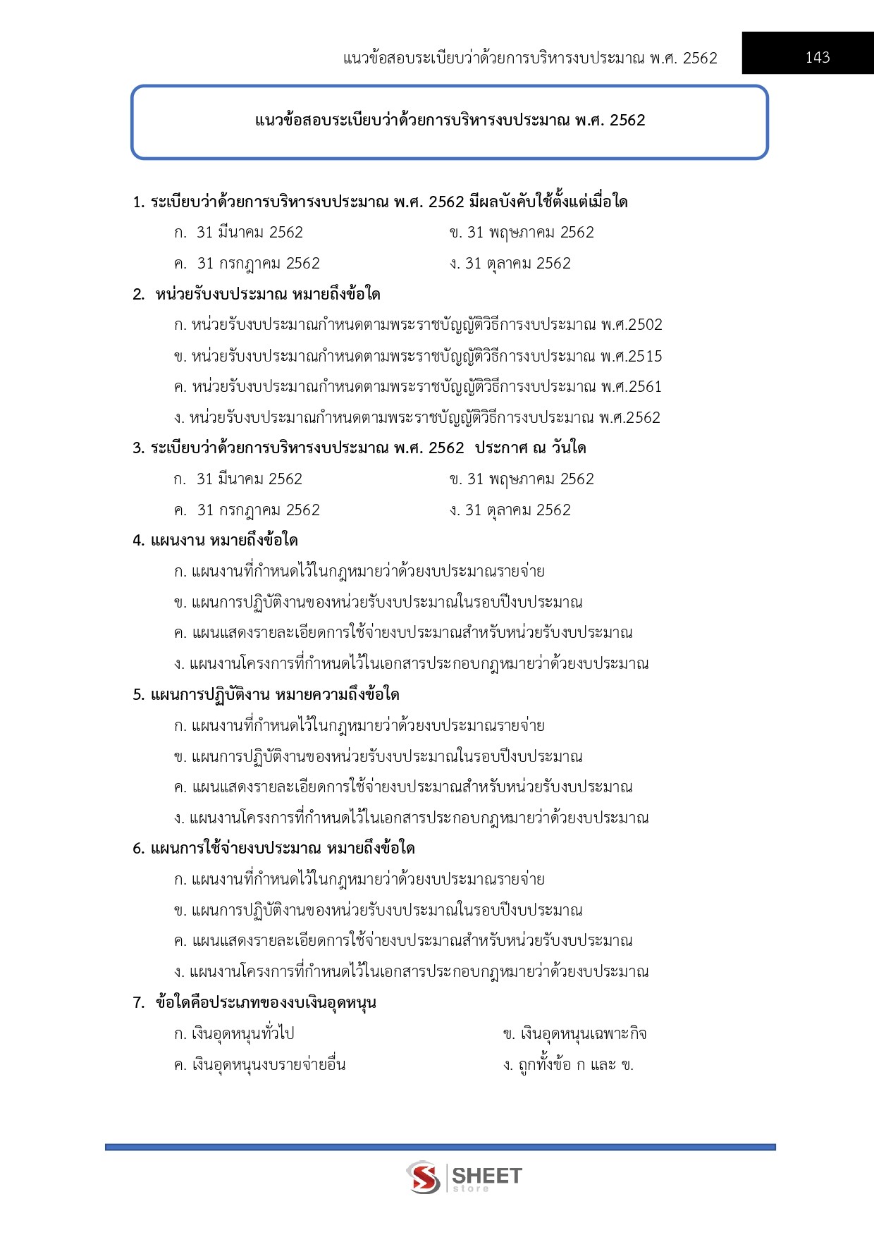 – แนวข้อสอบความรู้เกี่ยวกับระบบบริหารการเงินการคลังภาครัฐด้านงบประมาณ การเงิน บัญชี พัสดุ