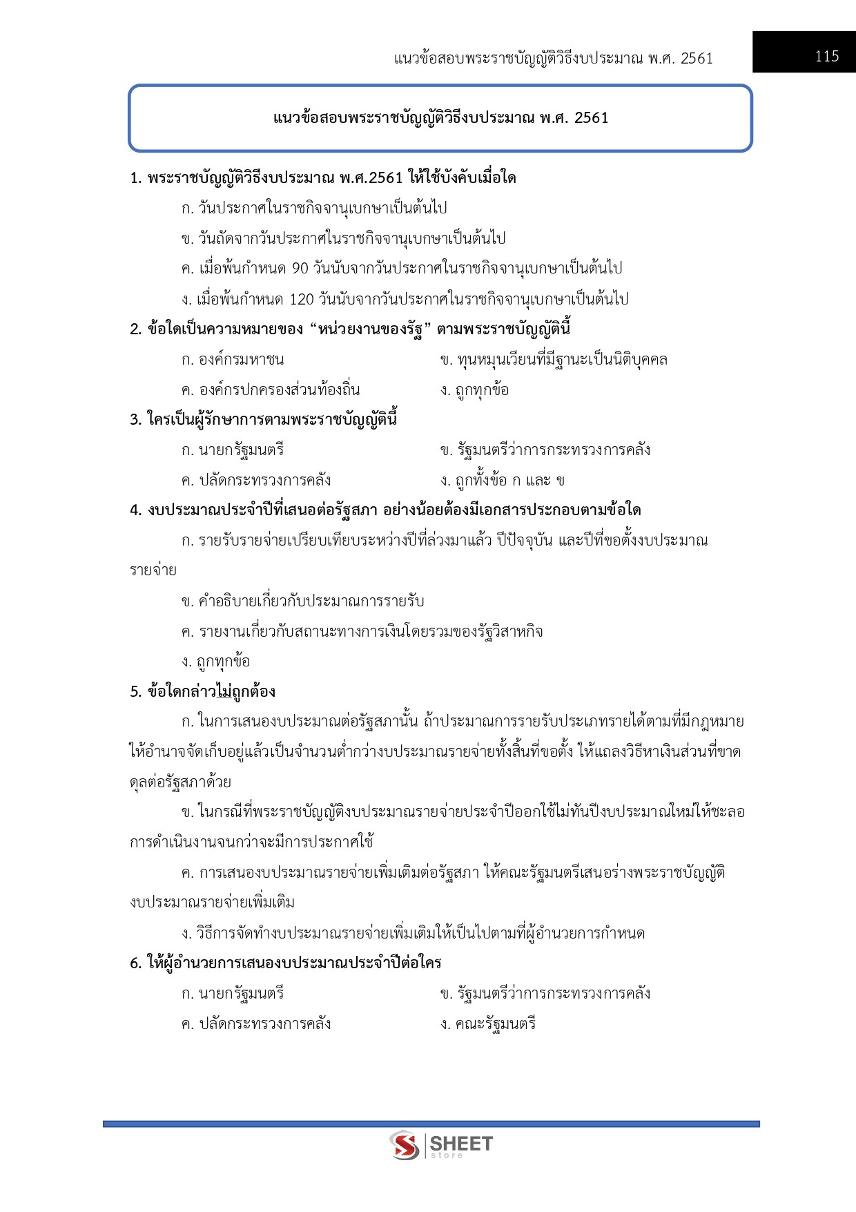 – แนวข้อสอบพระราชบัญญัติวิธีการงบประมาณ พ.ศ. 2561