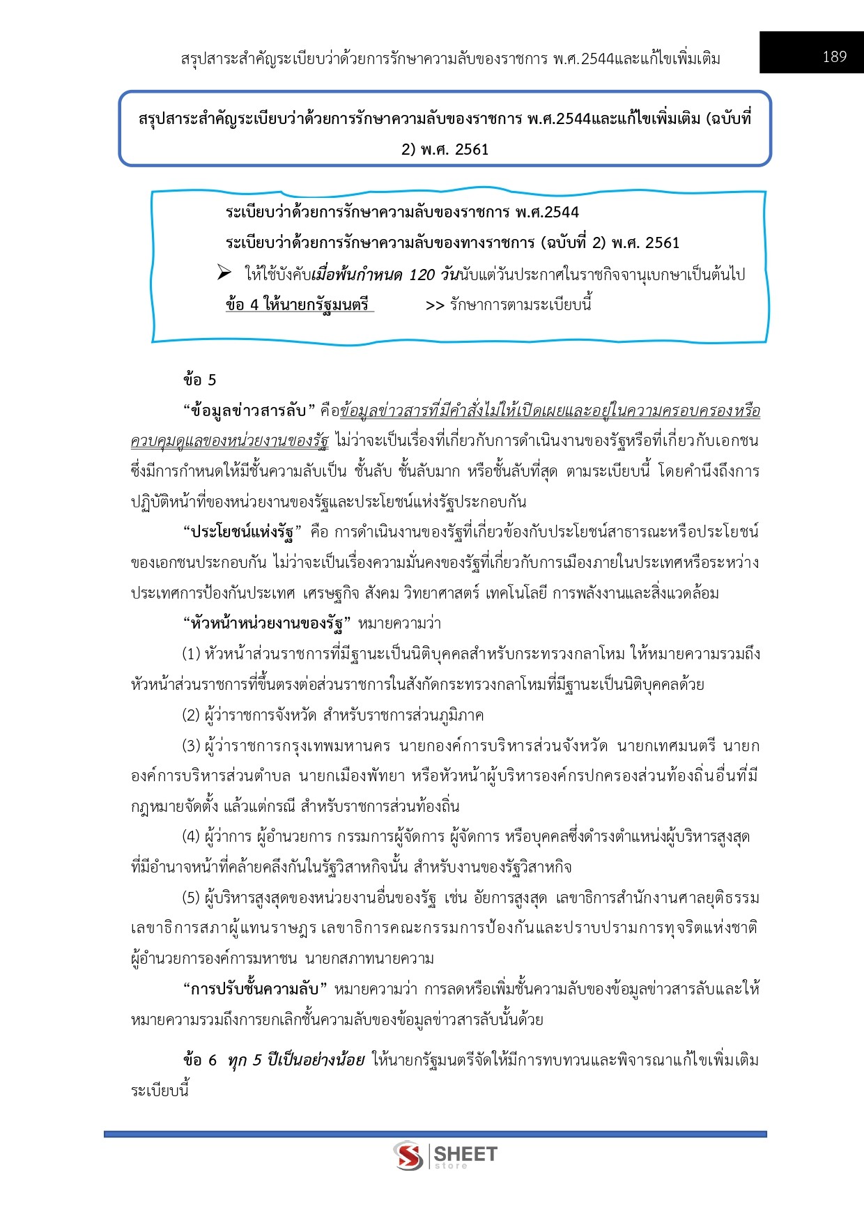 – แนวข้อสอบสรุปสาระสำคัญระเบียบว่าด้วยการรักษาความลับของราชการ พ.ศ. 2544 และแก้ไขเพิ่มเติม (ฉบับที่ 2) พ.ศ. 2561