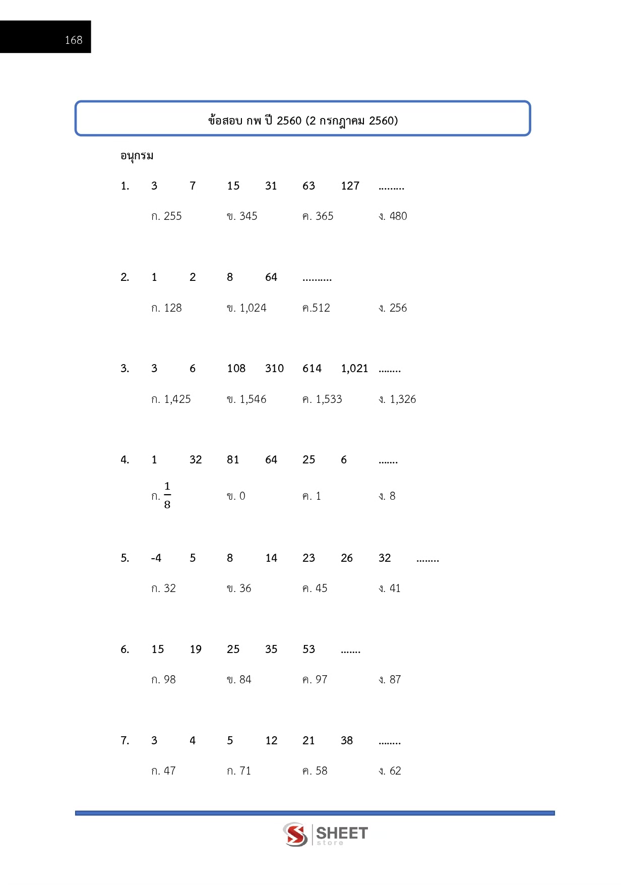 – แนวข้อสอบวิชาคณิตศาสตร์ พร้อมเฉลย และคำอธิบาย