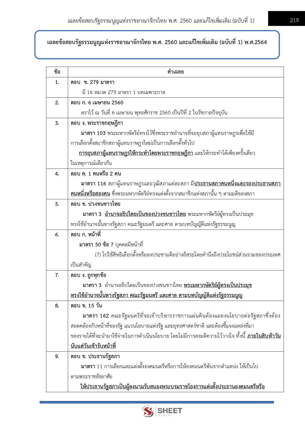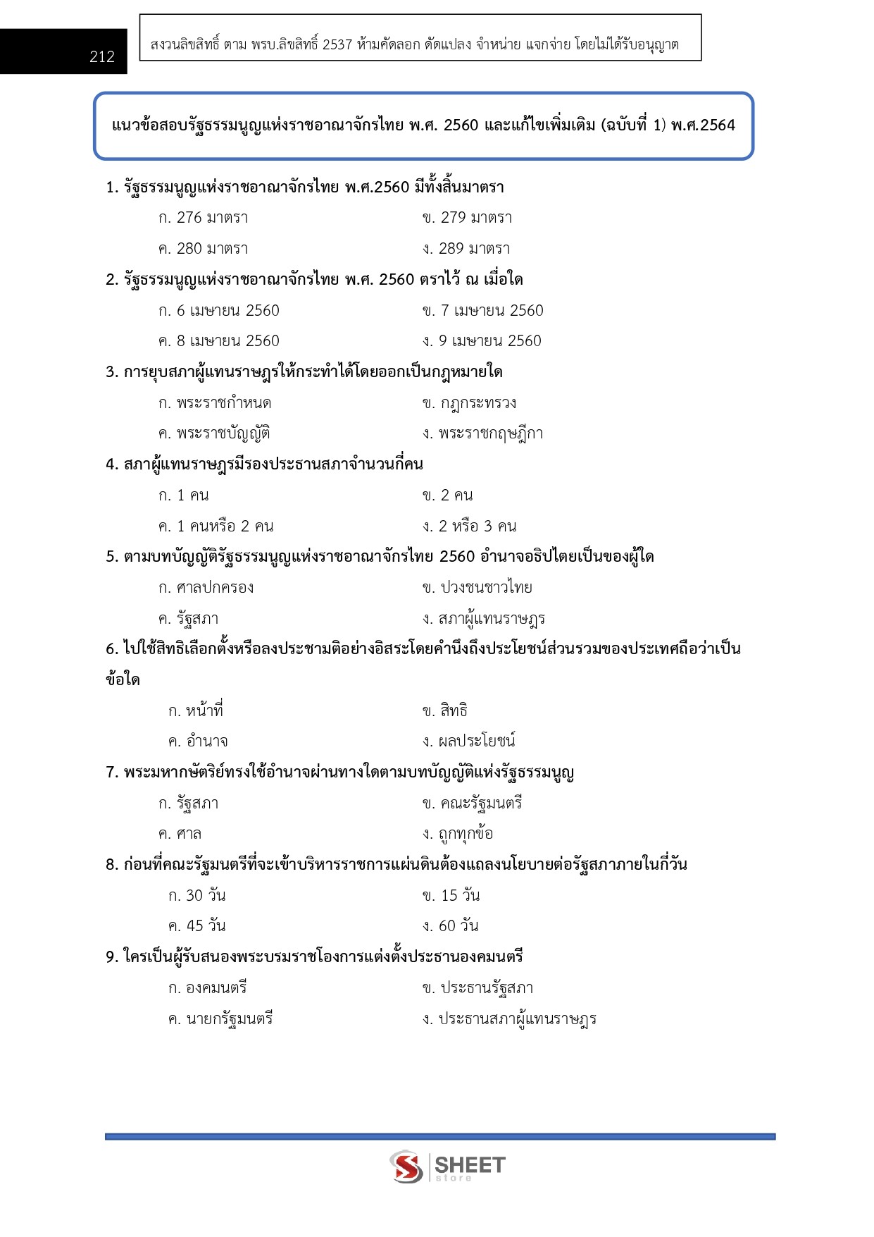 – แนวข้อสอบสรุปสาระสำคัญรัฐธรรมนูญแห่งราชอาณาจักรไทย พ.ศ. 2560 และที่แก้ไขเพิ่มเติม (ฉบับที่ 1) พ.ศ. 2564