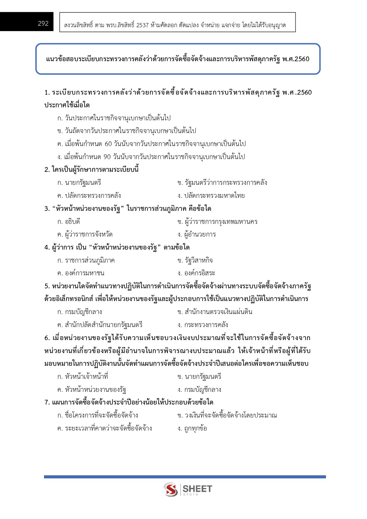 – แนวข้อสอบระเบียบกระทรวงการคลังว่าด้วยการจัดซื้อจัดจ้างและการบริหารพัสดุภาครัฐ พ.ศ. 2560