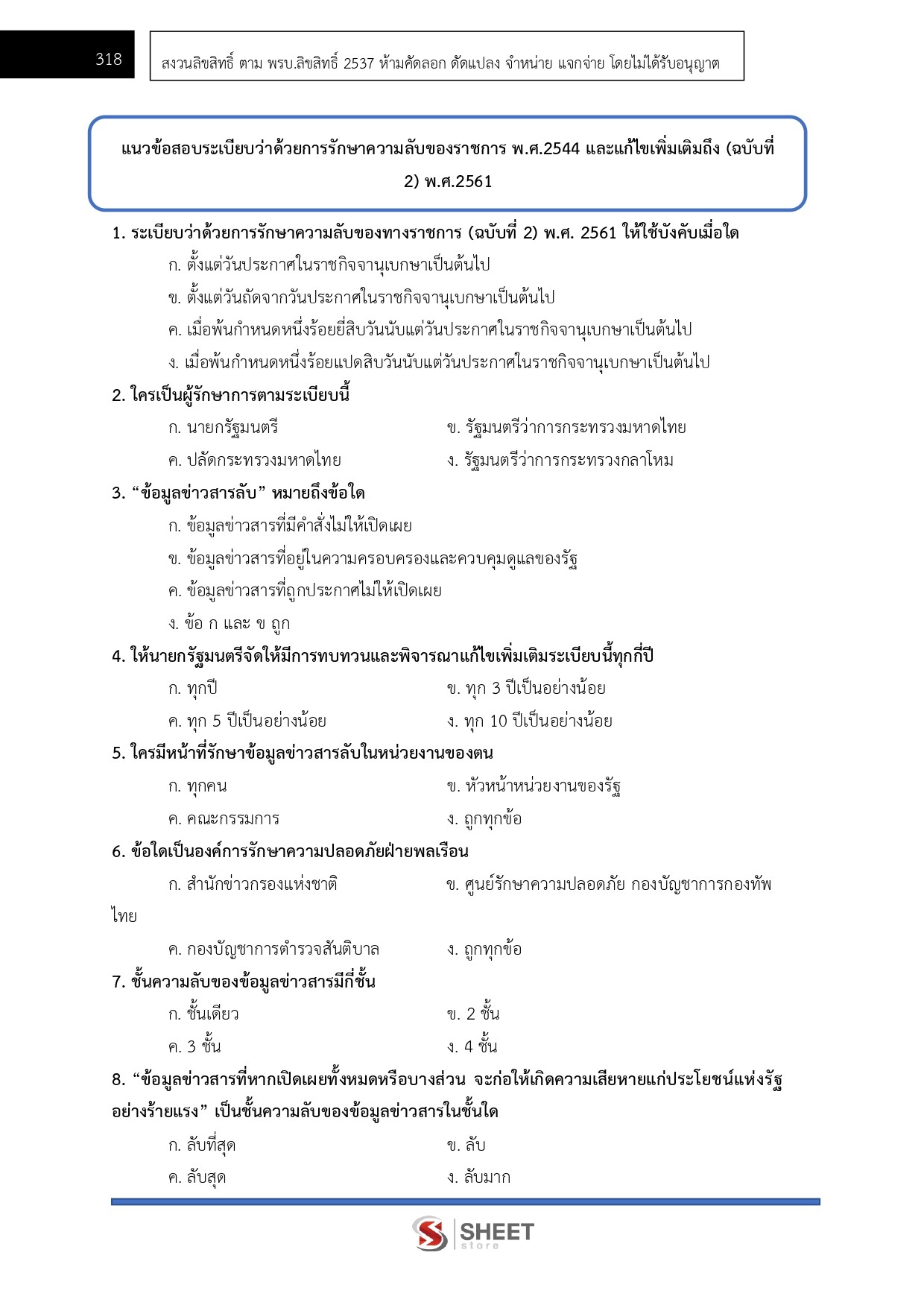 – แนวข้อสอบระเบียบว่าด้วยการรักษาความลับของราชการ พ.ศ. 2544 และที่แก้ไขเพิ่มเติมถึง (ฉบับที่ 2) พ.ศ. 2561