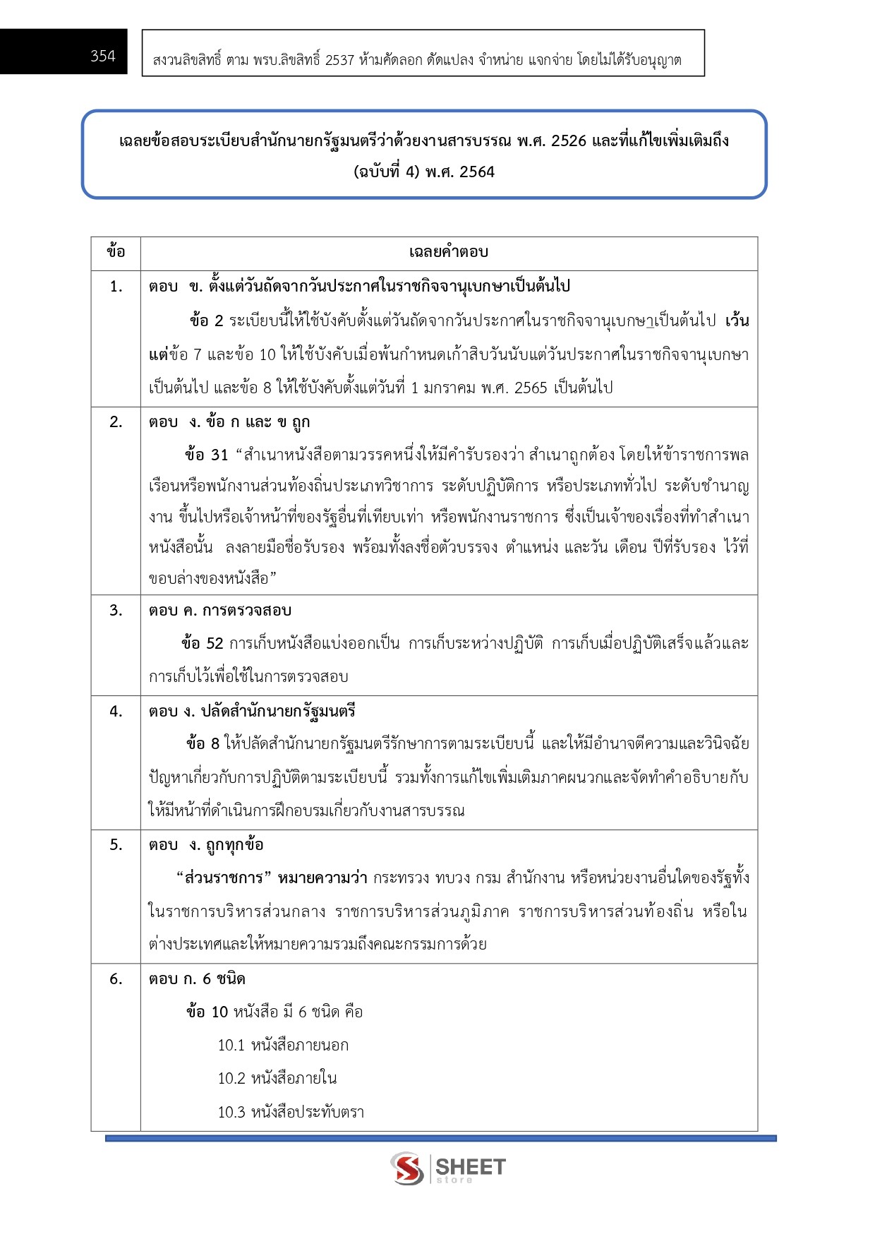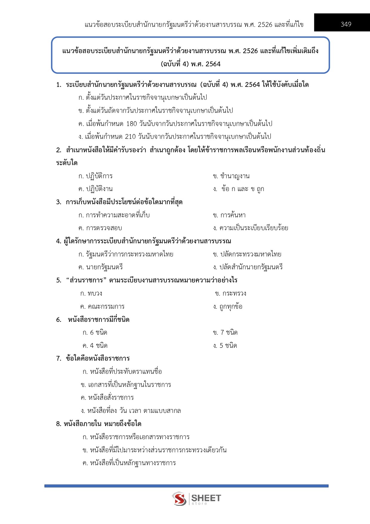 – แนวข้อสอบระเบียบสำนักนายกรัฐมนตรีว่าด้วยงานสารบรรณ พ.ศ. 2526 และที่แก้ไขเพิ่มเติมถึง (ฉบับที่ 4) พ.ศ. 2564