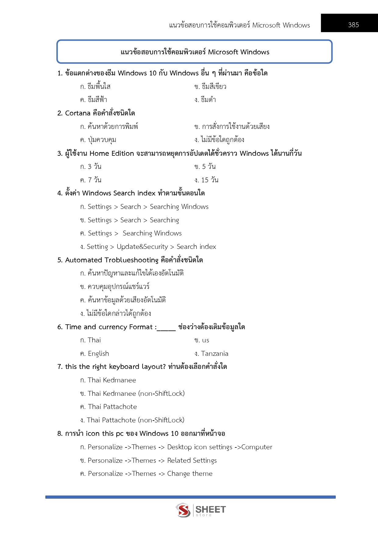 – แนวข้อสอบการใช้คอมพิวเตอร์ Microsoft Windows