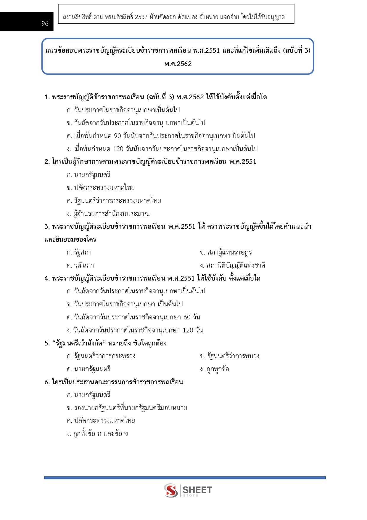 – แนวข้อสอบสรุปสาระสำคัญพระราชบัญญัติระเบียบข้าราชการพลเรือน พ.ศ.2551 และที่แก้ไขเพิ่มเติมถึง (ฉบับที่ 3) พ.ศ.2562