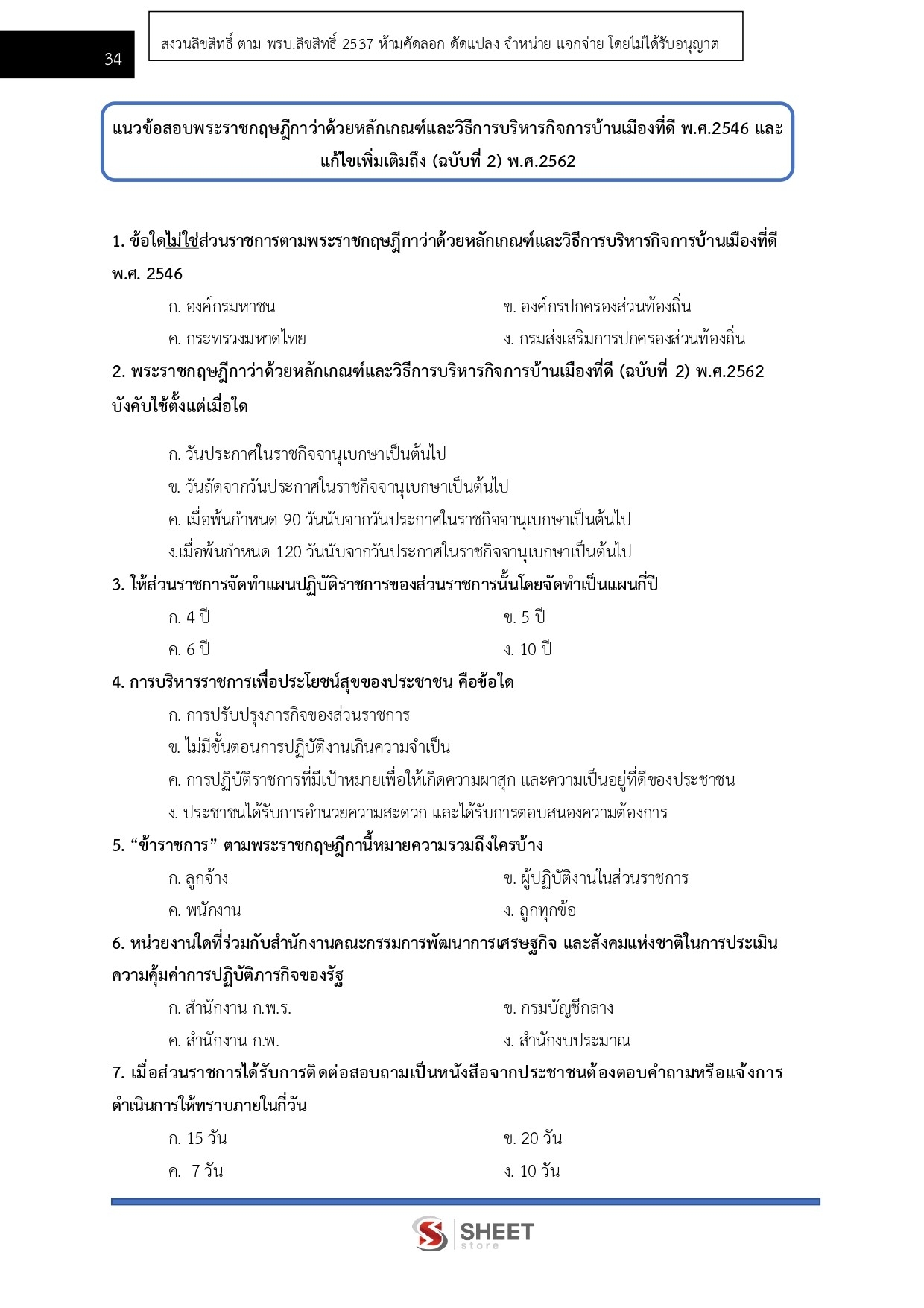 – แนวข้อสอบพระราชกฤษฎีกาว่าด้วยหลักเกณฑ์และวิธีการบริหารกิจการบ้านเมืองที่ดี พ.ศ. 2546 และที่แก้ไขเพิ่มเติมถึง (ฉบับที่ 2) พ.ศ.2562