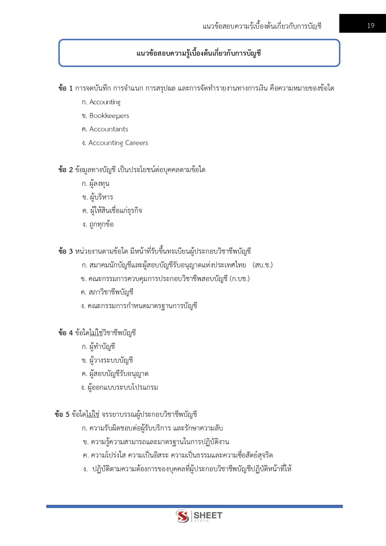 – แนวข้อสอบความรู้เกี่ยวกับหลักการบัญชีเบื้องต้น