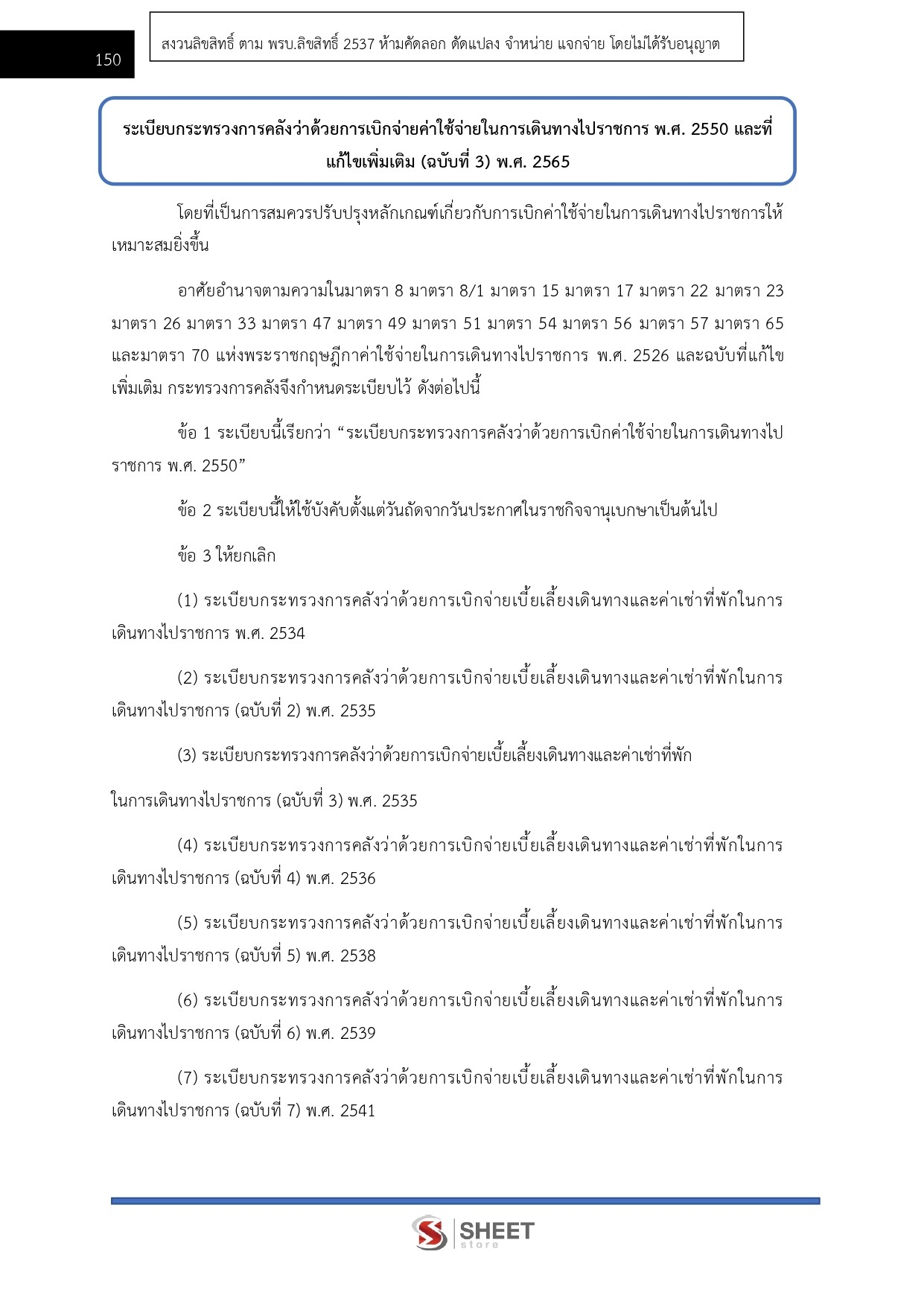 – แนวข้อสอบระเบียบกระทรวงการคลังว่าด้วยการเบิกจ่ายค่าใช้จ่ายในการเดินทางไปราชการ พ.ศ. 2550 และที่แก้ไขเพิ่มเติม (ฉบับที่ 3) พ.ศ. 2565
