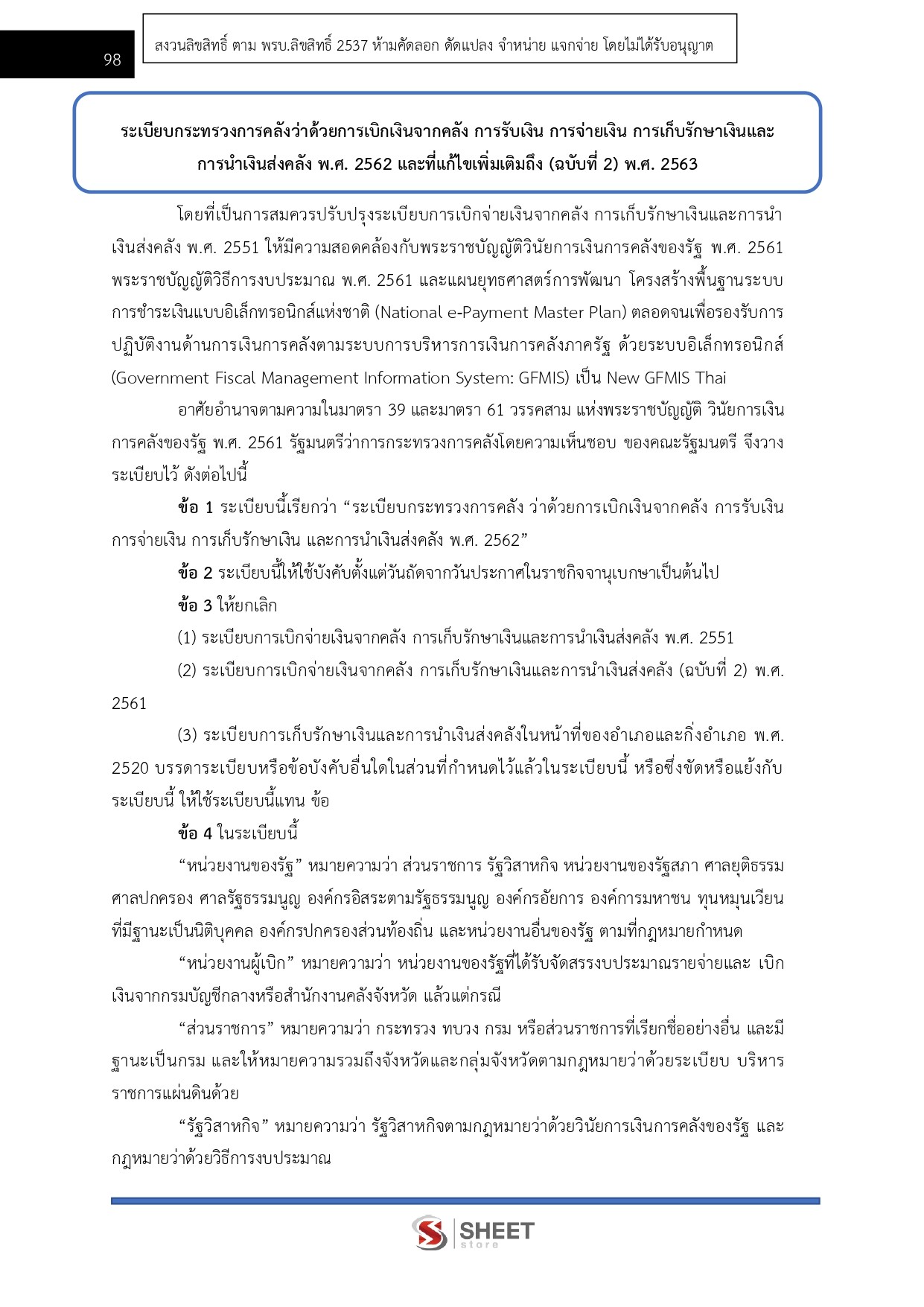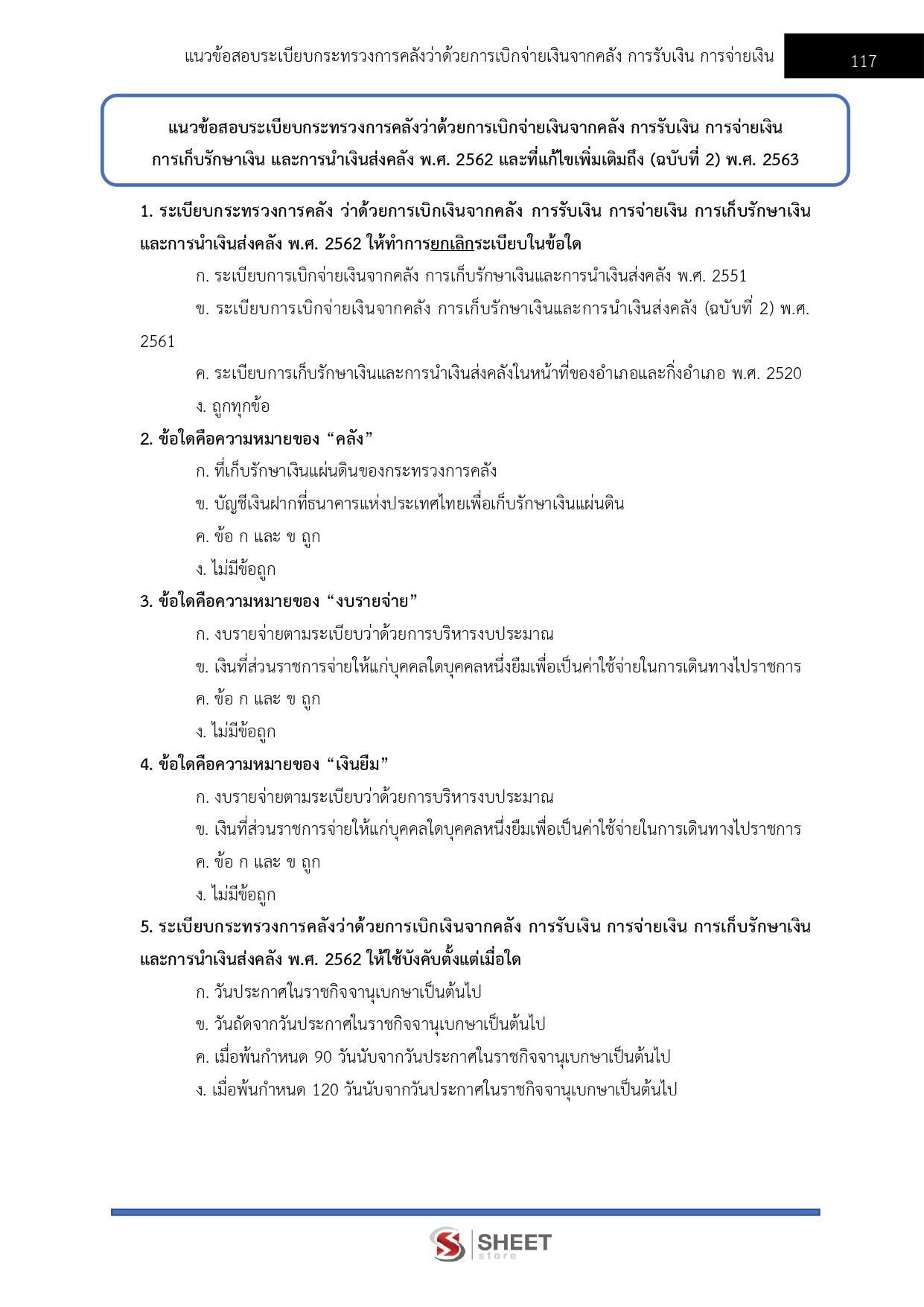 – แนวข้อสอบระเบียบกระทรวงการคลังว่าด้วยการเบิกเงินจากคลัง การรับเงิน การจ่ายเงิน การเก็บรักษาเงินและการนำเงินส่งคลัง พ.ศ. 2562 และแก้ไขเพิ่มเติมถึง (ฉบับที่ 2) พ.ศ. 2563