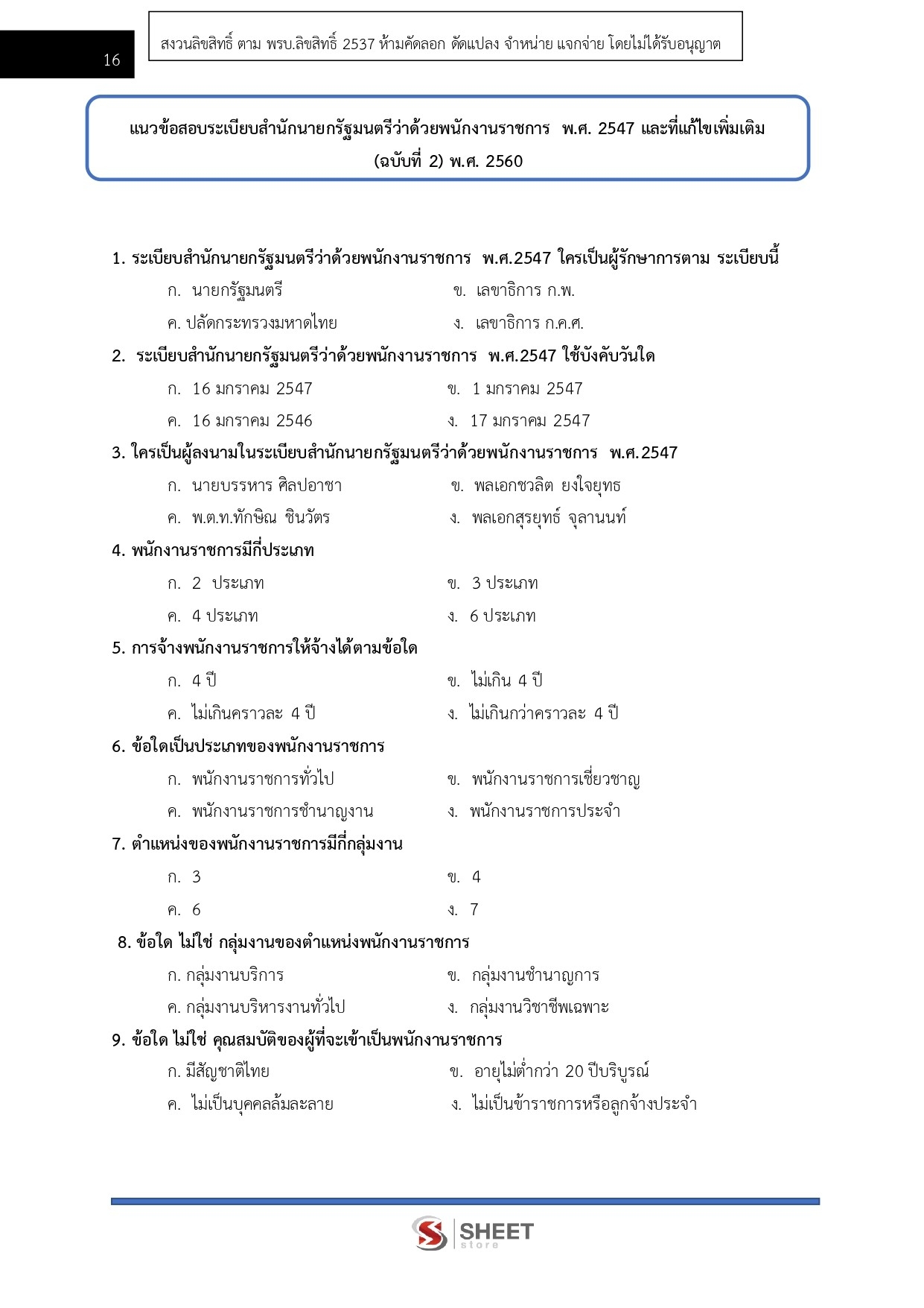 – แนวข้อสอบระเบียบสำนักนายกรัฐมนตรีว่าด้วยพนักงานราชการ พ.ศ. 2547 และแก้ไขเพิ่มเติม (ฉบับที่ 2) พ.ศ.2560