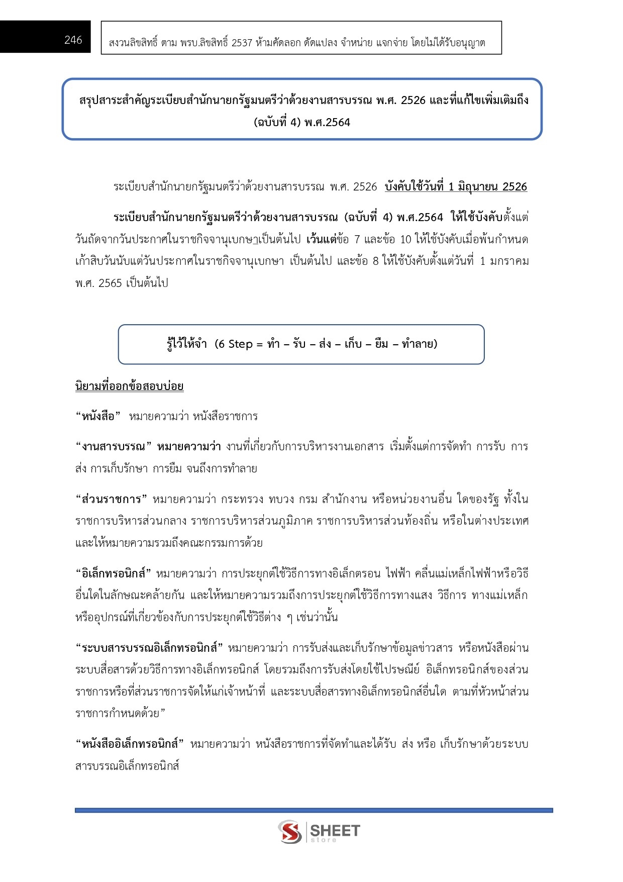 – แนวข้อสอบระเบียบสำนักนายกรัฐมนตรีว่าด้วยงานสารบรรณ พ.ศ. 2526 และที่แก้ไขเพิ่มเติมถึง (ฉบับที่ 4) พ.ศ.2564