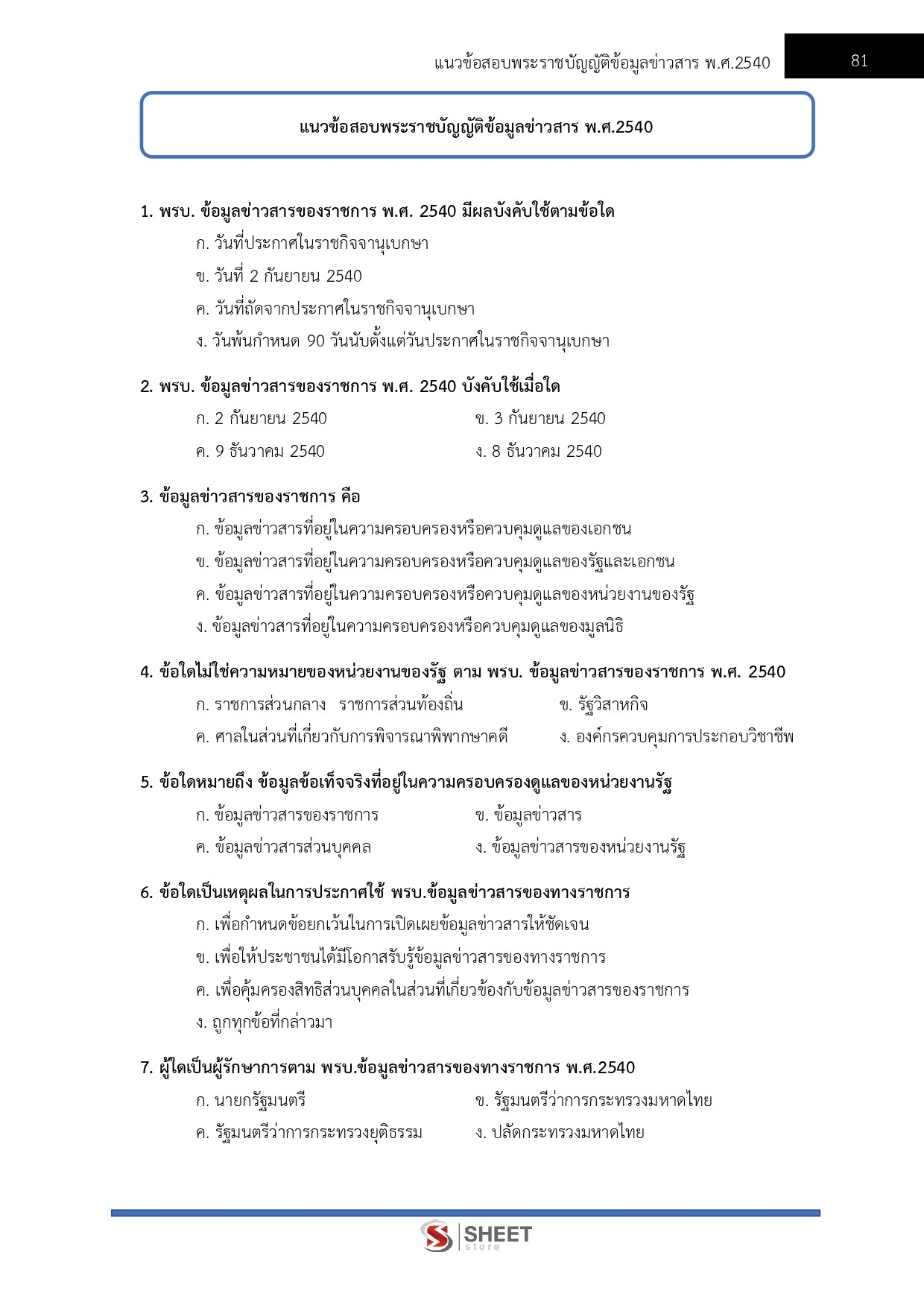 – แนวข้อสอบสรุปสาระสำคัญพระราชบัญญัติข้อมูลข่าวสาร พ.ศ.2540