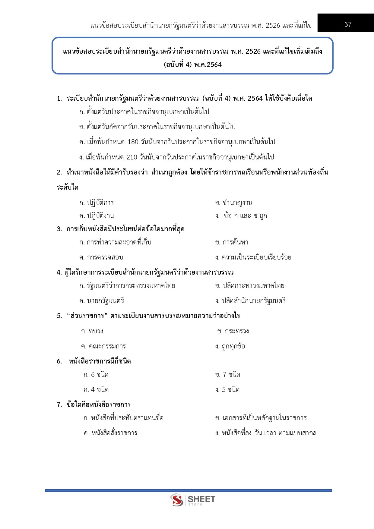 – แนวข้อสอบสรุปสาระสำคัญระเบียบสำนักนายกรัฐมนตรีว่าด้วยงานสารบรรณ พ.ศ. 2526 และที่แก้ไขเพิ่มเติมถึง (ฉบับที่ 4) พ.ศ.2564
