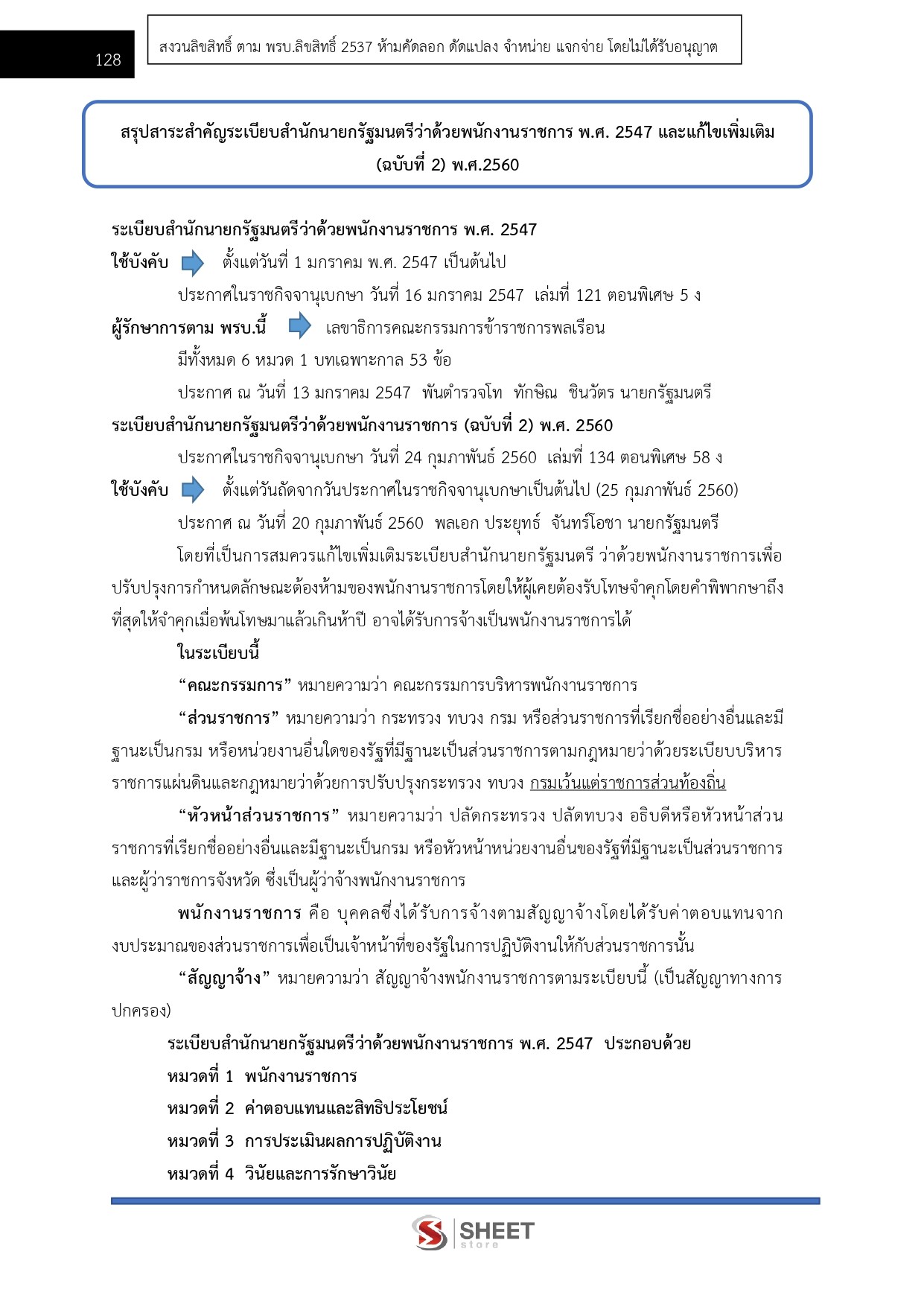 – แนวข้อสอบสรุปสาระสำคัญระเบียบสำนักนายกรัฐมนตรีว่าด้วยพนักงานราชการ พ.ศ. 2547 และแก้ไขเพิ่มเติม (ฉบับที่ 2) พ.ศ. 2560