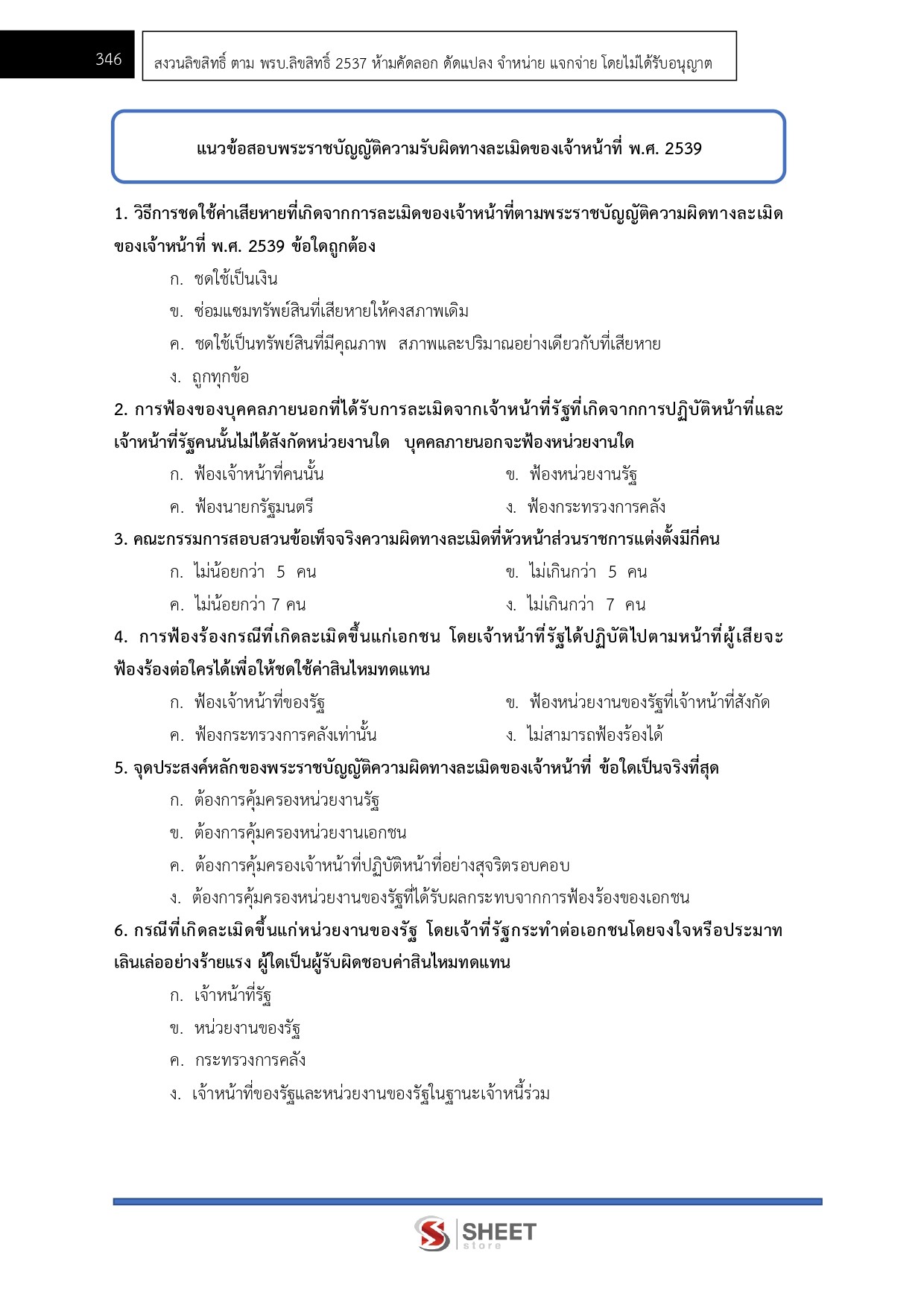 – แนวข้อสอบพระราชบัญญัติความรับผิดทางละเมิดของเจ้าหน้าที่ พ.ศ. 2539