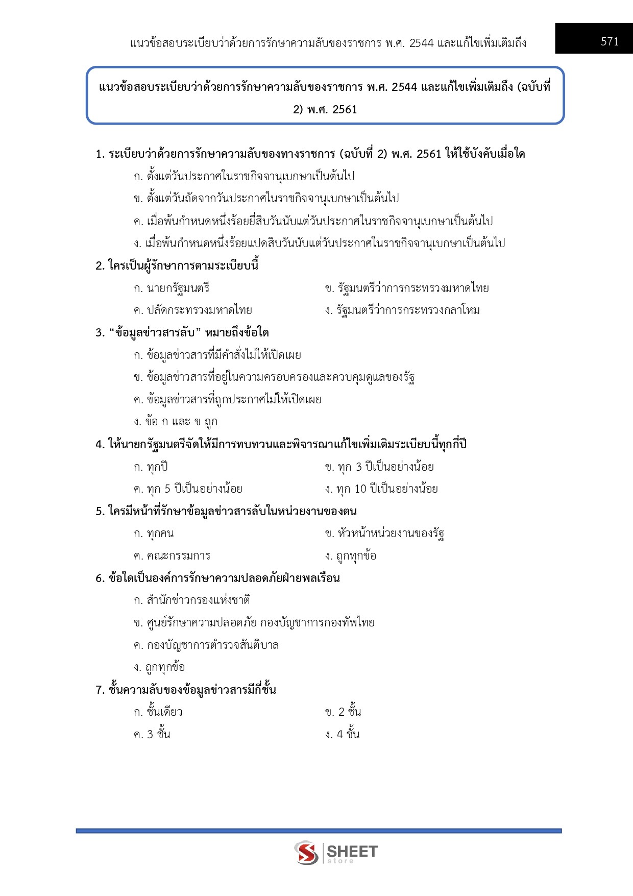 – แนวข้อสอบสรุปสาระสำคัญระเบียบว่าด้วยการรักษาความลับของราชการ พ.ศ. 2544 และแก้ไขเพิ่มเติม (ฉบับที่ 2) พ.ศ. 2561