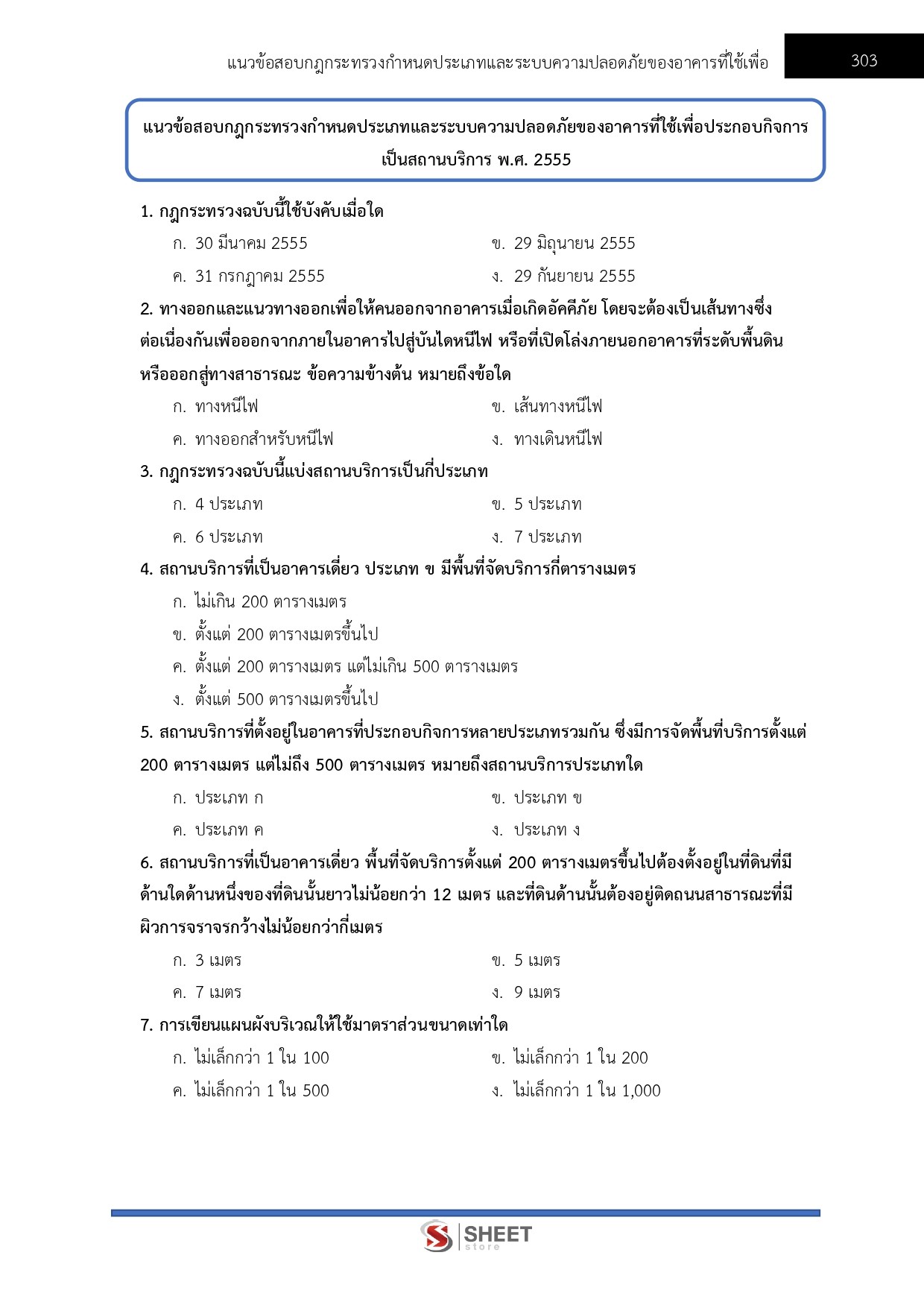 – แนวข้อสอบกฎกระทรวงกำหนดประเภทและระบบความปลอดภัยของอาคารที่ใช้เพื่อประกอบกิจการเป็นสถานบริการ พ.ศ. 2555