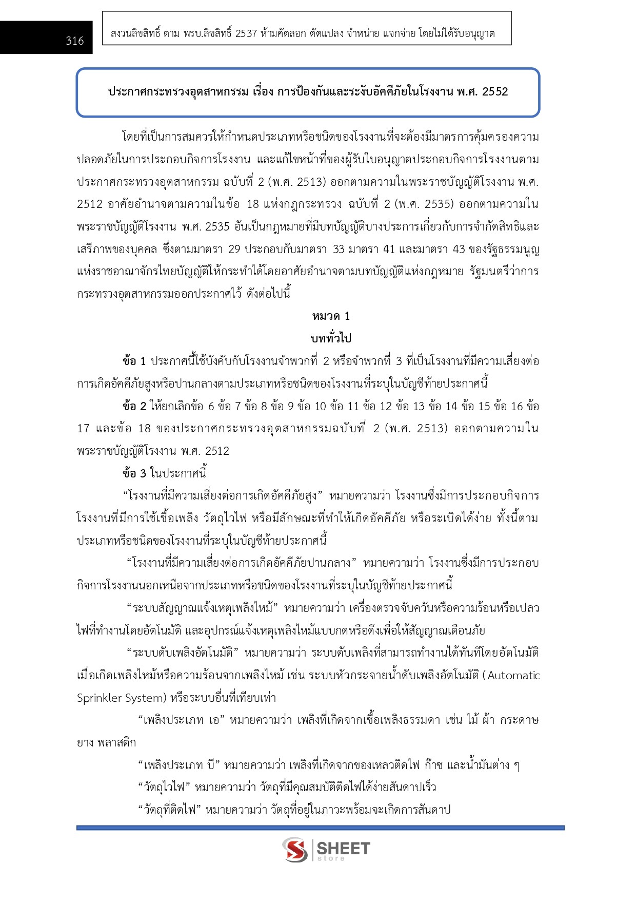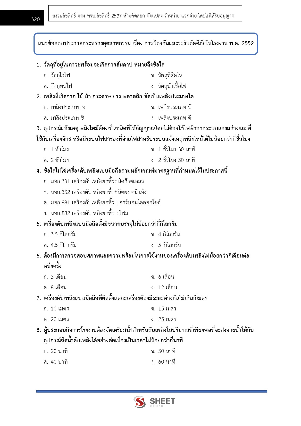– แนวข้อสอบประกาศกระทรวงอุตสาหกรรม เรื่อง การป้องกันและระงับอัคคีภัยในโรงงาน พ.ศ. 2552