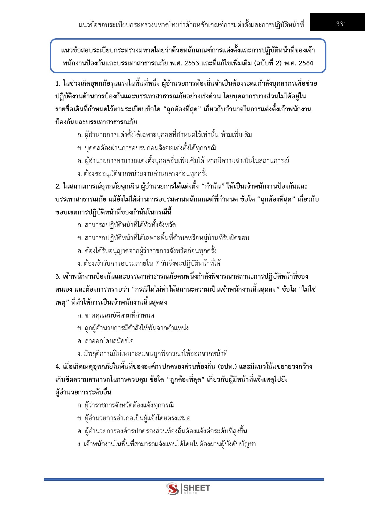 – แนวข้อสอบระเบียบกระทรวงมหาดไทยว่าด้วยหลักเกณฑ์การแต่งตั้งและการปฏิบัติหน้าที่ของเจ้าพนักงานป้องกันและบรรเทาสาธารณภัย พ.ศ. 2553 และที่แก้ไขเพิ่มเติม (ฉบับที่ 2) พ.ศ. 2564
