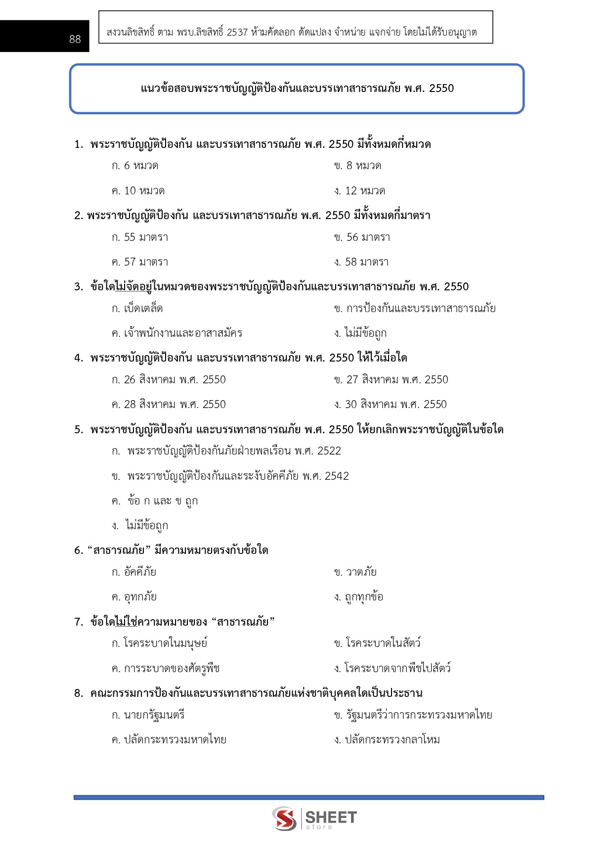 – แนวข้อสอบพระราชบัญญัติป้องกันและบรรเทาสาธารณภัย พ.ศ. 2550