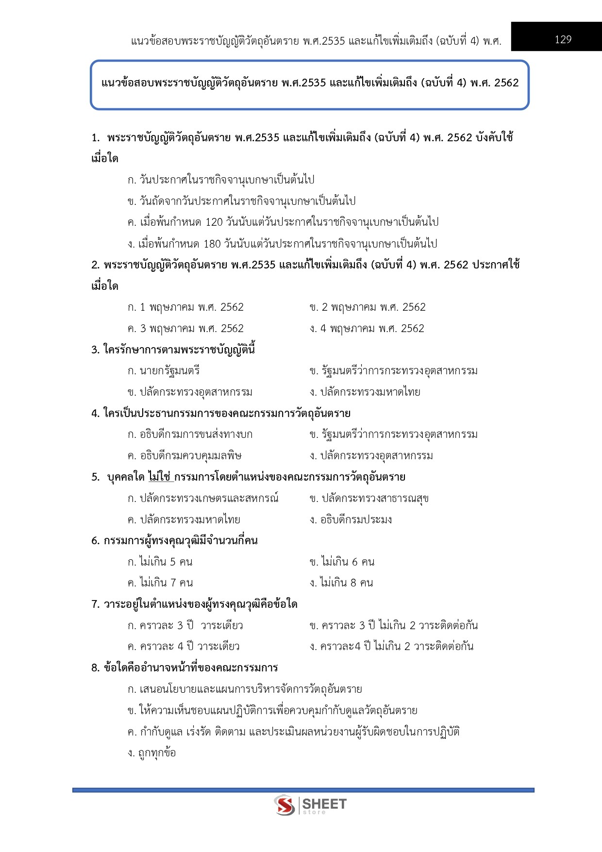 – แนวข้อสอบพระราชบัญญัติวัตถุอันตราย พ.ศ. 2535 และแก้ไขเพิ่มเติม (ฉบับที่ 4) พ.ศ. 2562