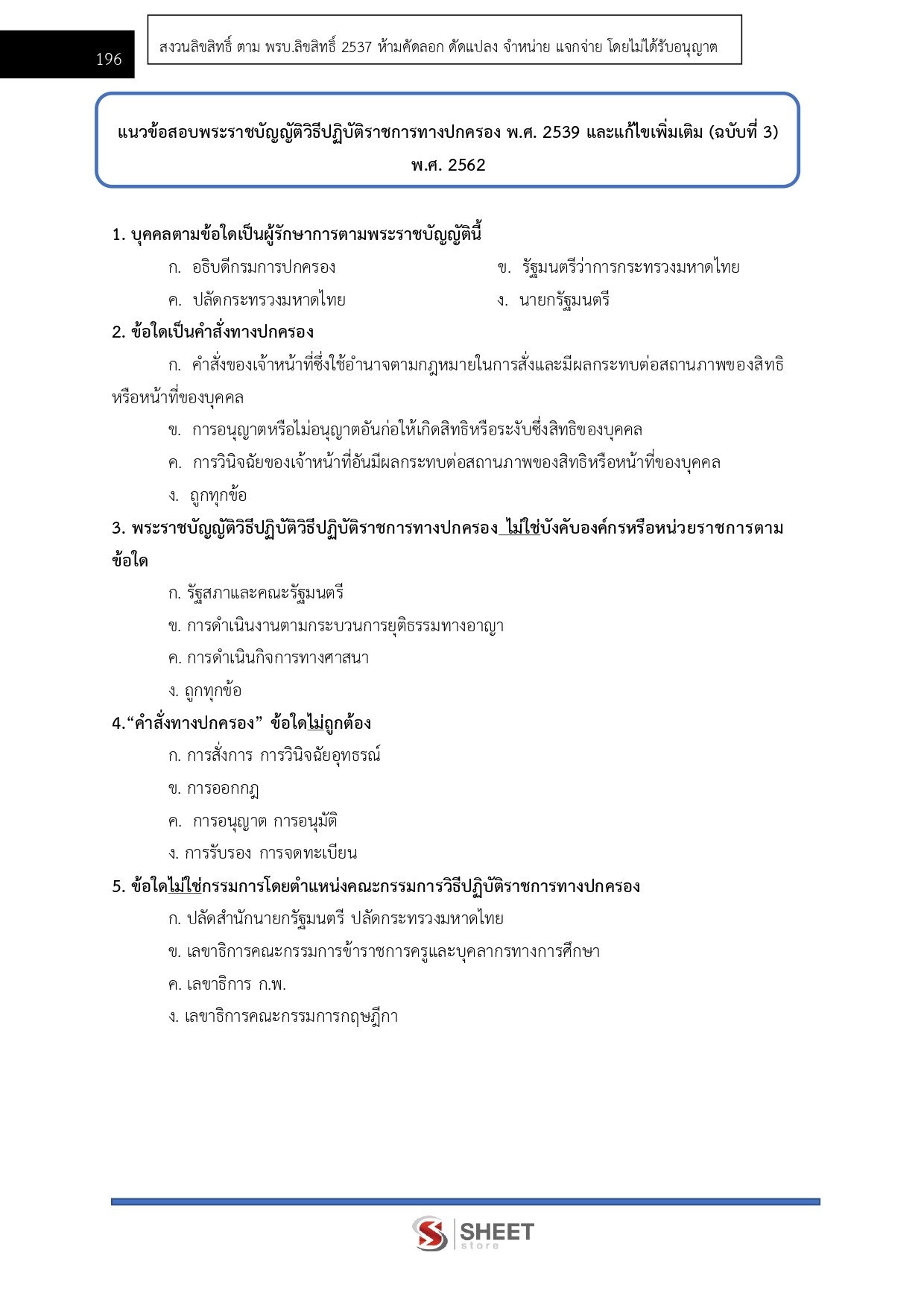 – แนวข้อสอบพระราชบัญญัติวิธีปฏิบัติราชการทางปกครอง พ.ศ. 2539 และแก้ไขเพิ่มเติมถึง (ฉบับที่ 3) พ.ศ.2562