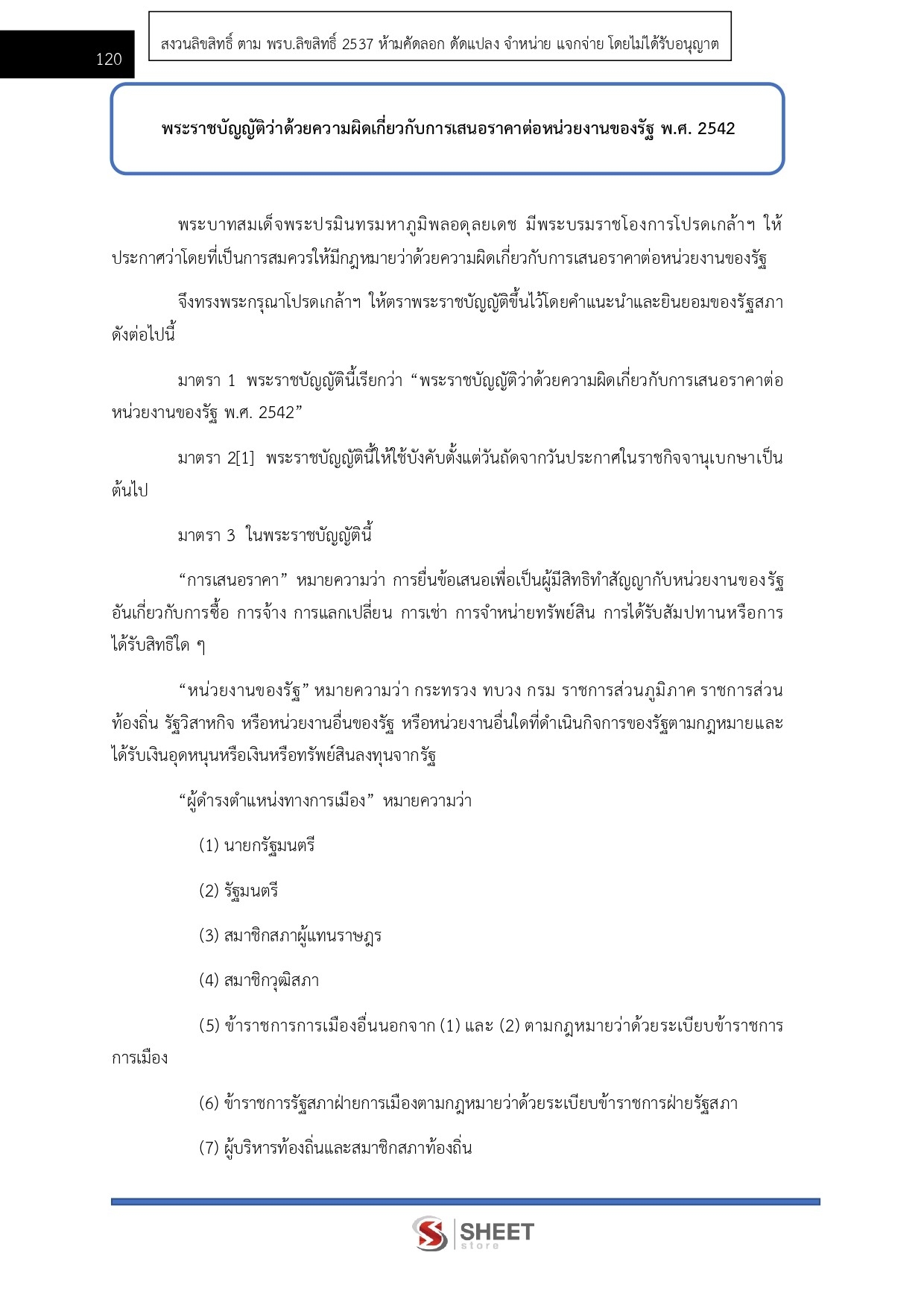 – แนวข้อสอบพระราชบัญญัติว่าด้วยความผิดเกี่ยวกับการเสนอราคาต่อหน่วยงานของรัฐ พ.ศ. 2542