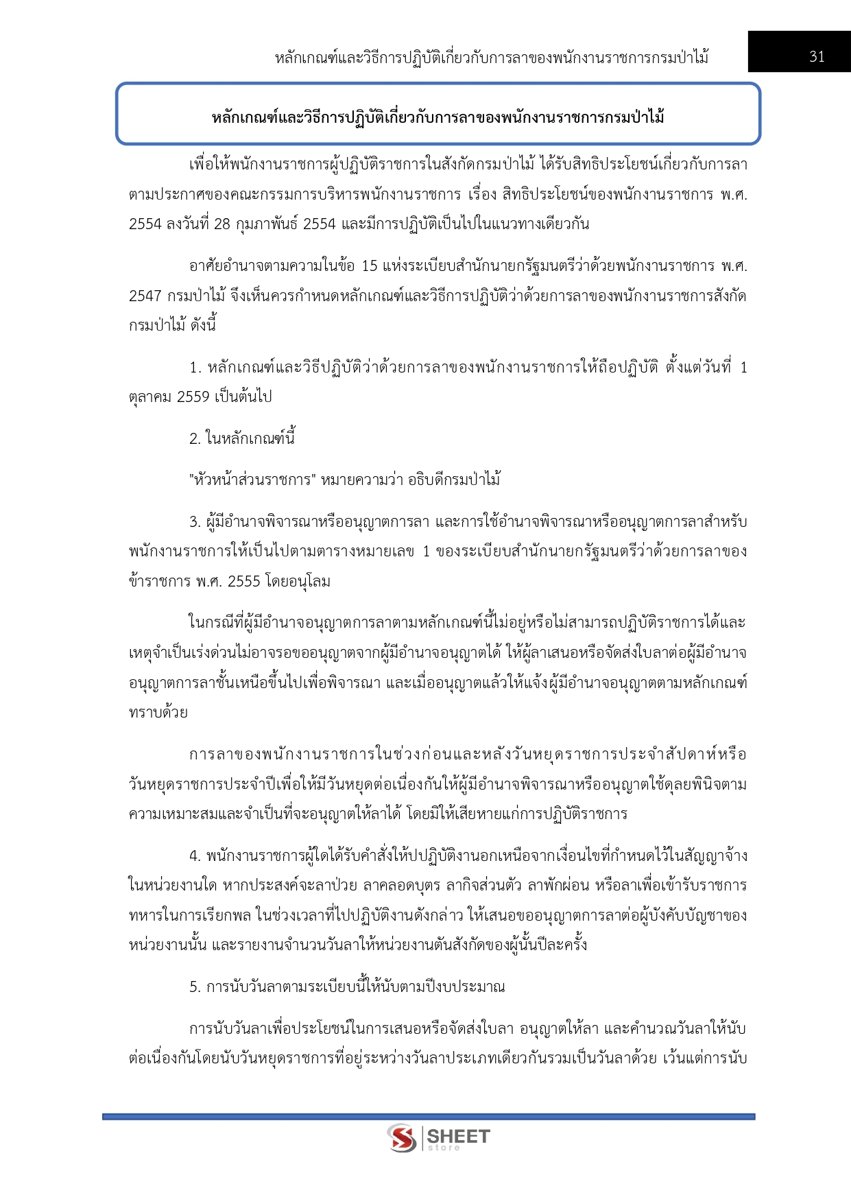– หลักเกณฑ์และวิธีการปฏิบัติเกี่ยวกับการลาของพนักงานราชการกรมป่าไม้