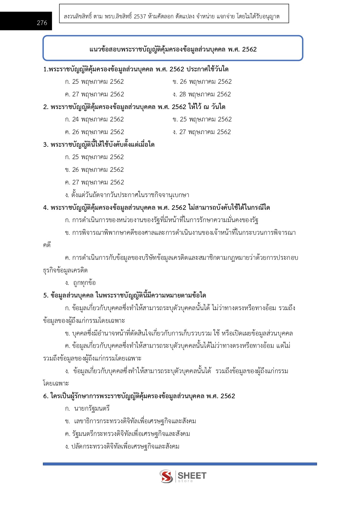 – แนวข้อสอบพระราชบัญญัติคุ้มครองข้อมูลส่วนบุคคล พ.ศ. 2562