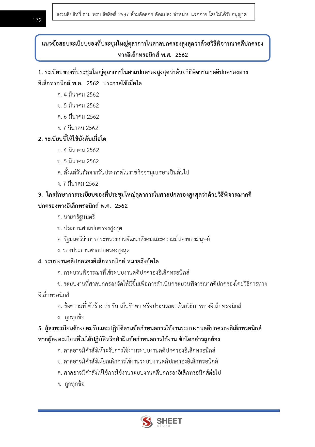 – แนวข้อสอบระเบียบของที่ประชุมใหญ่ตุลาการในศาลปกครองสูงสุดว่าด้วยวิธีพิจารณาคดีปกครองทางอิเล็กทรอนิกส์ พ.ศ. 2562